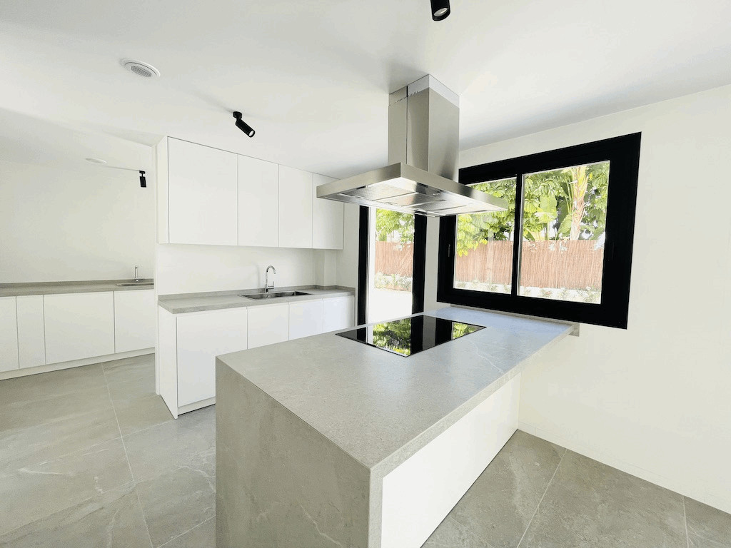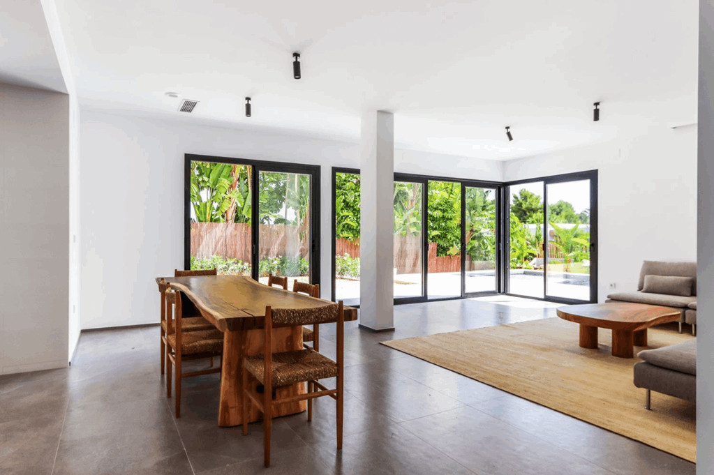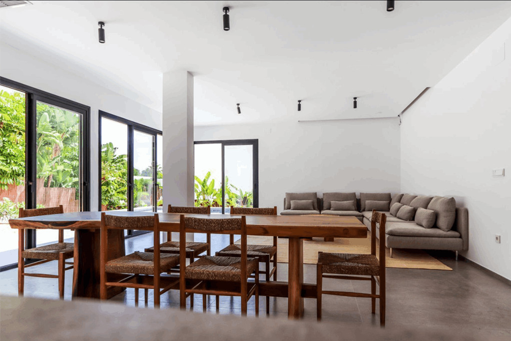 Upon entering, you will be greeted by a spacious living-dining room that connects to the naya and the pool terrace. This space is perfect for enjoying moments of relaxation and fun with family and friends. The intelligent layout of the house ensures a perfect flow between the indoor and outdoor spaces.