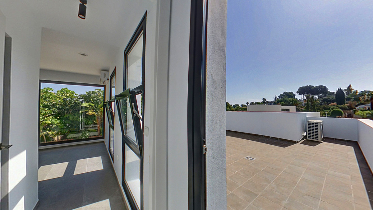 The upper floor houses a magnificent master bedroom equipped with a spacious dressing room, an en-suite bathroom and a large solarium terrace. Imagine waking up every day to panoramic views and enjoying moments of tranquillity in your own private oasis.