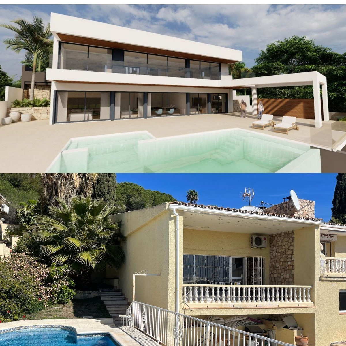 Gør dette til en smuk ejendom med renovering. Den fantastiske havudsigt og privatlivets fred er unik! Byen har 4 gode soveværelser og 2 badeværelser, 1 med jacuzzi. Åbent køkken og spisestue, bryggers og en dejlig rummelig stue med flotte stenvægge og pejs. Stor pool med fantastisk havudsigt! Haven kan laves om til terrasse, padelbane eller hvad du nu drømmer om!