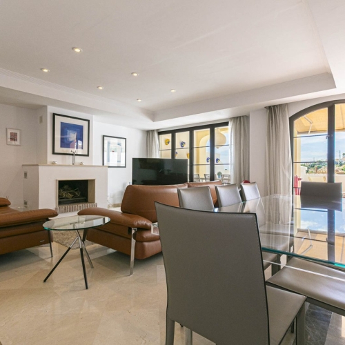 Located in the prestigious La Quinta Golf, this beautifully renovated townhouse offers breathtaking sea, golf course, and mountain views from every level. Designed for modern luxury, it features a bright open-plan living space, a sleek Barazza kitchen with a central island, and a stylish bioethanol fireplace. Floor-to-ceiling sliding doors lead to a spacious terrace, perfect for al fresco dining and relaxation.