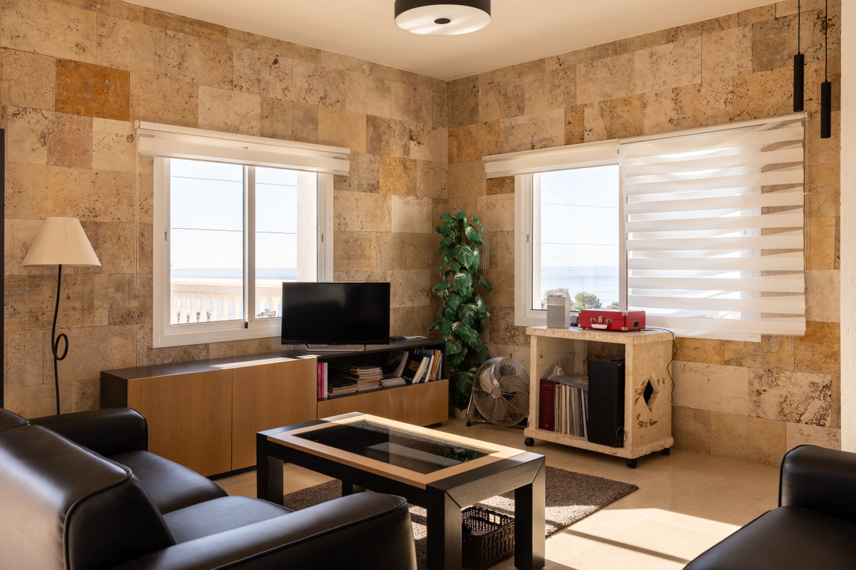 Downstairs there is another 54m2 room and a kitchen, which can be used to make a separate apartamento. On the same level is the garden and swimming pool area, which also has a view of the Mediterranean Sea.