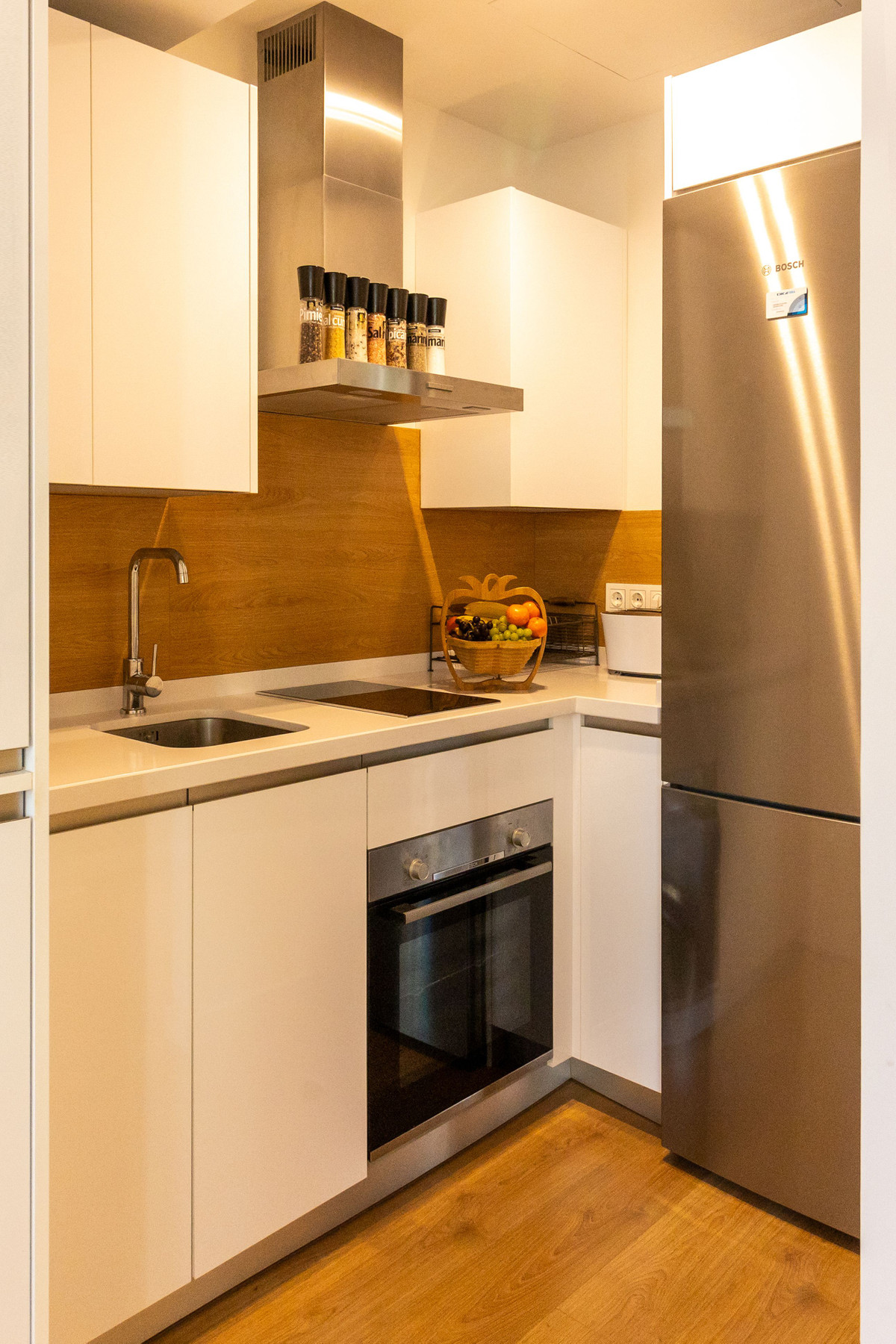 The kitchen, although small, is open plan and equipped with everything you need to cook comfortably. The living-dining room, integrated in the same space, creates a cozy and functional environment to relax and enjoy moments with family and friends.
