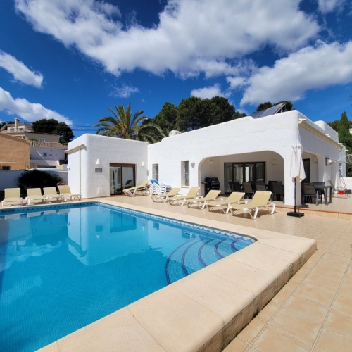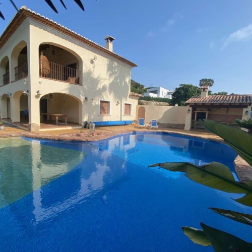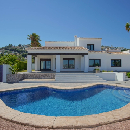 New villa located in one of the most exclusive areas to live on the Spanish Costa Blanca, between Pinar del Advocat and Benimeit, in the coastal town of Moraira, just 2.5 km from the beaches, the old town of Moraira, the fishing port, and the Yacht Club. The timeless and refined style of this luxurious residential complex, "Moraira Natura," will undoubtedly captivate you! This ambitious project, constructed with high-quality materials, consists of 6 units that enjoy great privacy in an incomparable setting filled with natural light and nature's aromas, wrapped in the most sophisticated Mediterranean architectural essence.