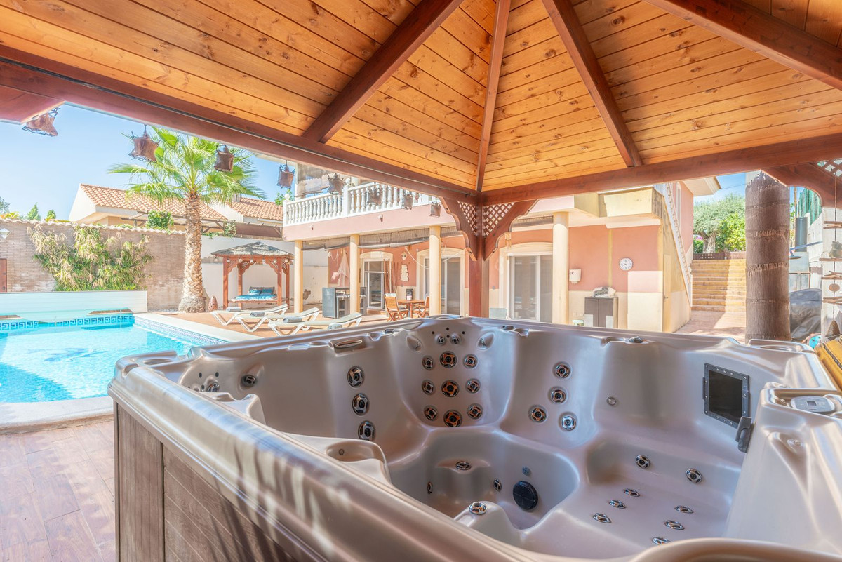 Located in the sought-after area of Partida Bonalba, Busot, between the golf course and the charming village of Busot, is this remarkable residence: Villa Bali. Renovated to a high standard, it offers over 330 m² of living space. Situated on a private plot more than double its size, this villa enjoys easy access to the village of Busot, just a five-minute drive away, 15 minutes from the pristine beaches of El Campello-San Juan, and only 25-30 minutes from Alicante and its international airport.