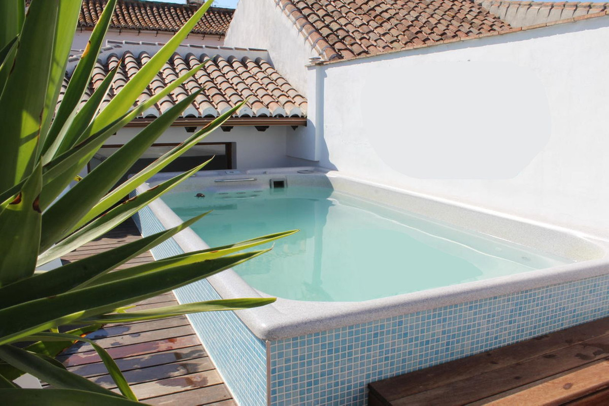 As is often the case in Andalusian cities, you cannot see the wealth and beauty behind the front door from the street. In this case, you will also be amazed upon entering the property through the large antique wooden doors. From the entrance hall, you step into the impressive courtyard, the focal point of the property. On the ground floor, there is the breakfast room with a bar, two guest rooms, guest toilets, and the entrance to the second patio, which can also be used privately thanks to access from the manager's residence. The manager's residence has a large open kitchen/living room, one bedroom with an ensuite bathroom, and an additional guest toilet (with shower). On the first and second floors, you will find the other 7 guest rooms (so 9 in total), including a family room with two sleeping areas. The other 8 rooms all have ensuite bathrooms, air conditioning, and tasteful furnishings. On the rooftop terrace, there is a pool/large jacuzzi and several lounge beds. The business is currently open 8-9 months a year and generates a good turnover. With some marketing efforts, much more can be achieved. Ideal location for a couple to manage and enjoy the pleasures of Spanish life. Opportunity to take over bookings and booking pages. The occupancy is good but with the right efforts, it could be much higher. Occupancy 2023: 55%, 1200 nights, average price around € 100,- (open 8/9 months). Before Covid: 1700 nights on average.