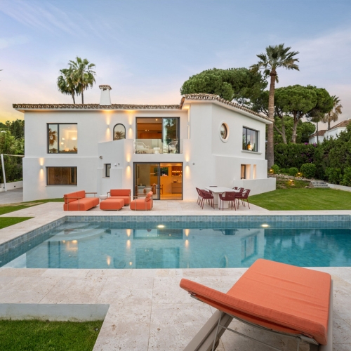 Nestled in a lush garden setting, exudes the charm of a timeless Andalusian residence while boasting contemporary interiors and a refined atmosphere.