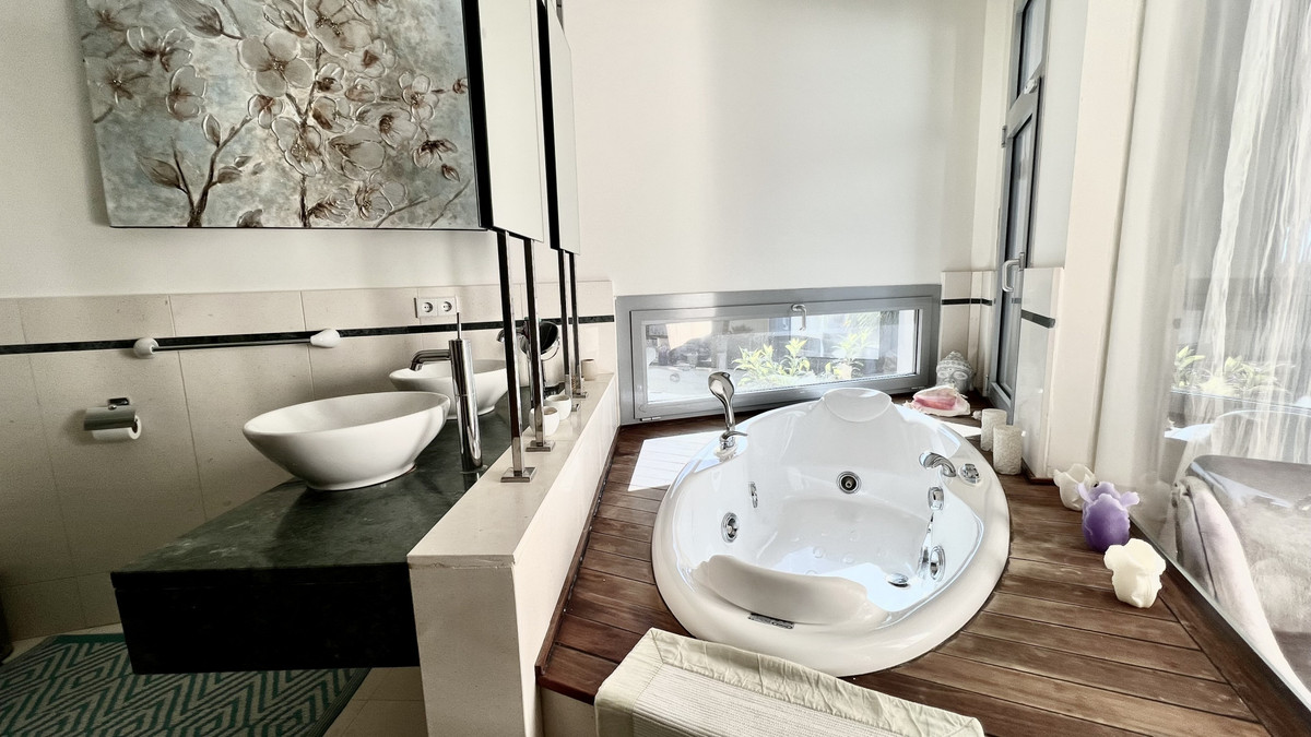 Ideally located near amenities, schools, the town centre, and the beach, this villa also offers proximity to bars and children's playgrounds. Additional features include air conditioning, a gym, storage room, and a guest toilet, ensuring every aspect of modern living is catered for in this exclusive Marbella residence.