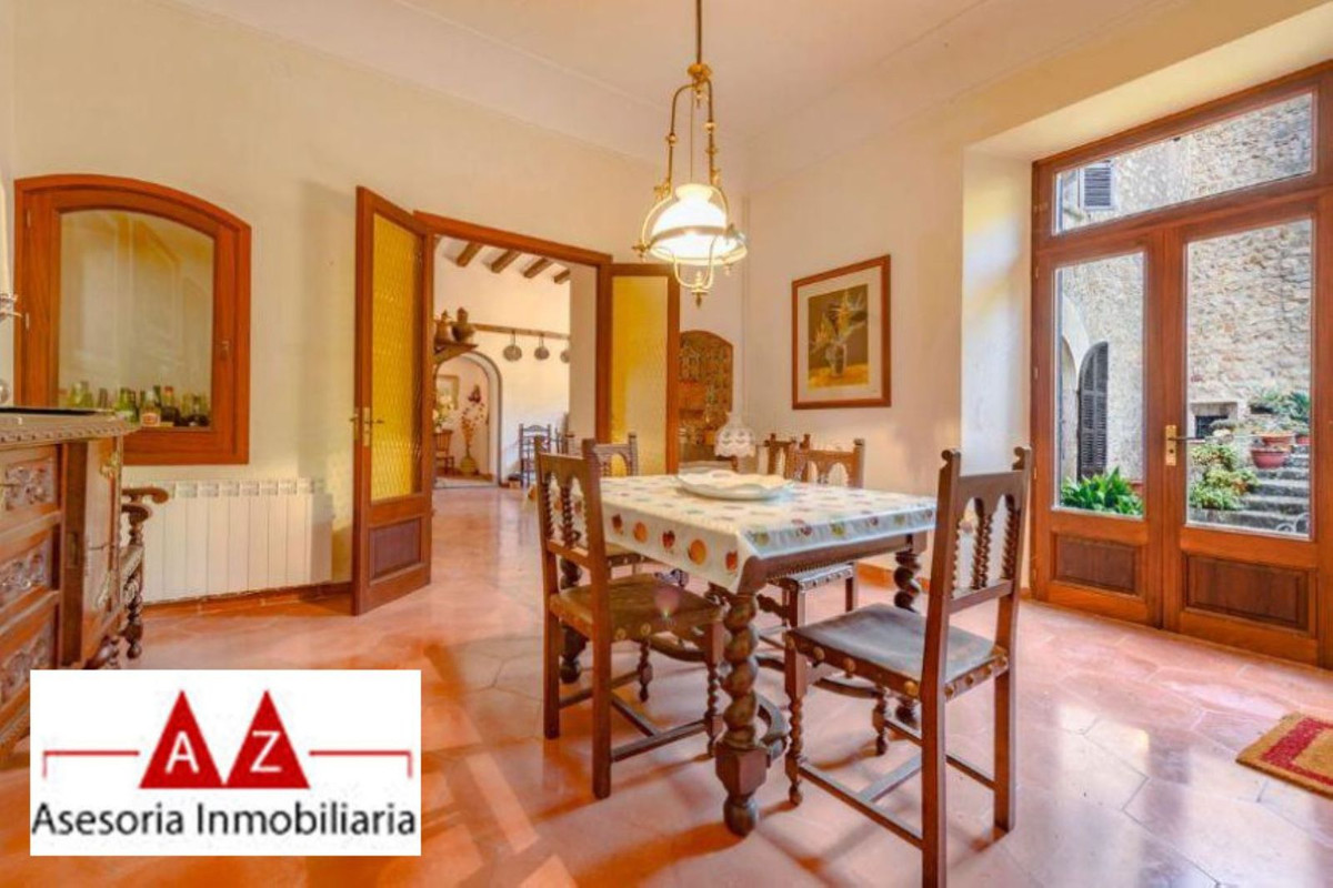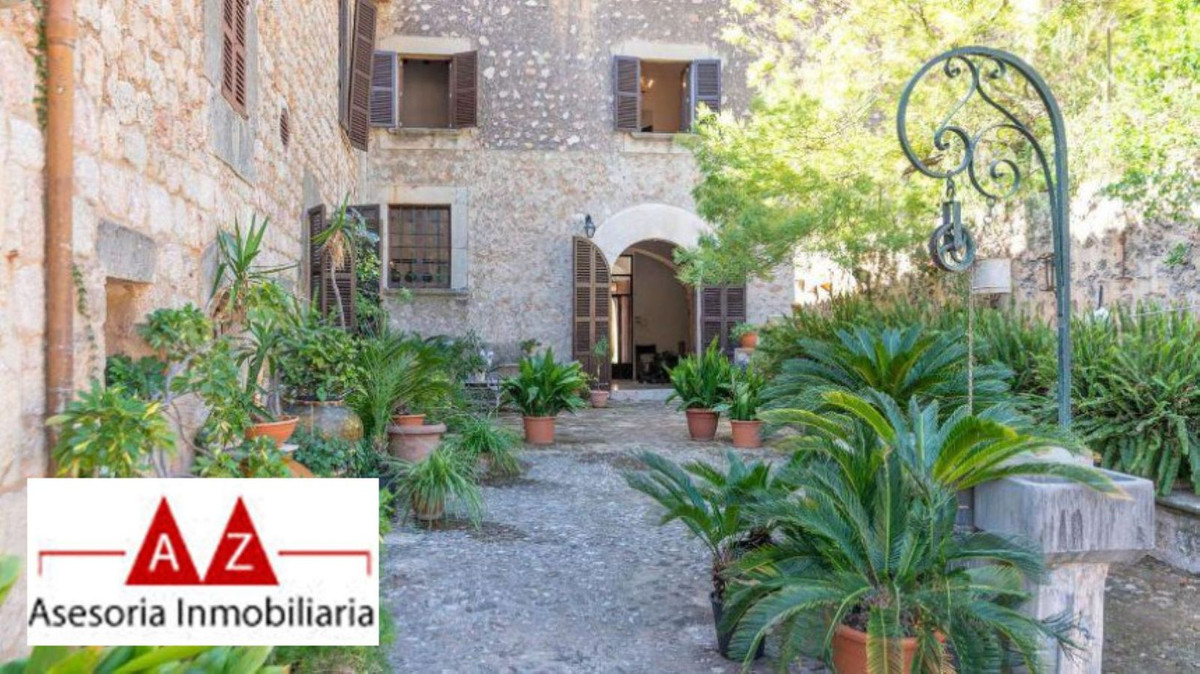 Fornalutx Beautiful house with a living area of approx. 1,500 m² is distributed over two levels as follows: several spacious rooms that can be used individually, a separate kitchen, a dining room, a total of eight bright bedrooms, four spacious bathrooms and several storage rooms. High ceilings lend a sense of grandeur, while authentic architectural details, such as beautifully preserved original encaustic tile floors, wooden ceiling beams and sandstone arches, guide residents through centuries of history. and tradition. The exterior offers several patio areas, a private fountain and Loft and chapel