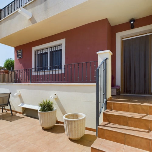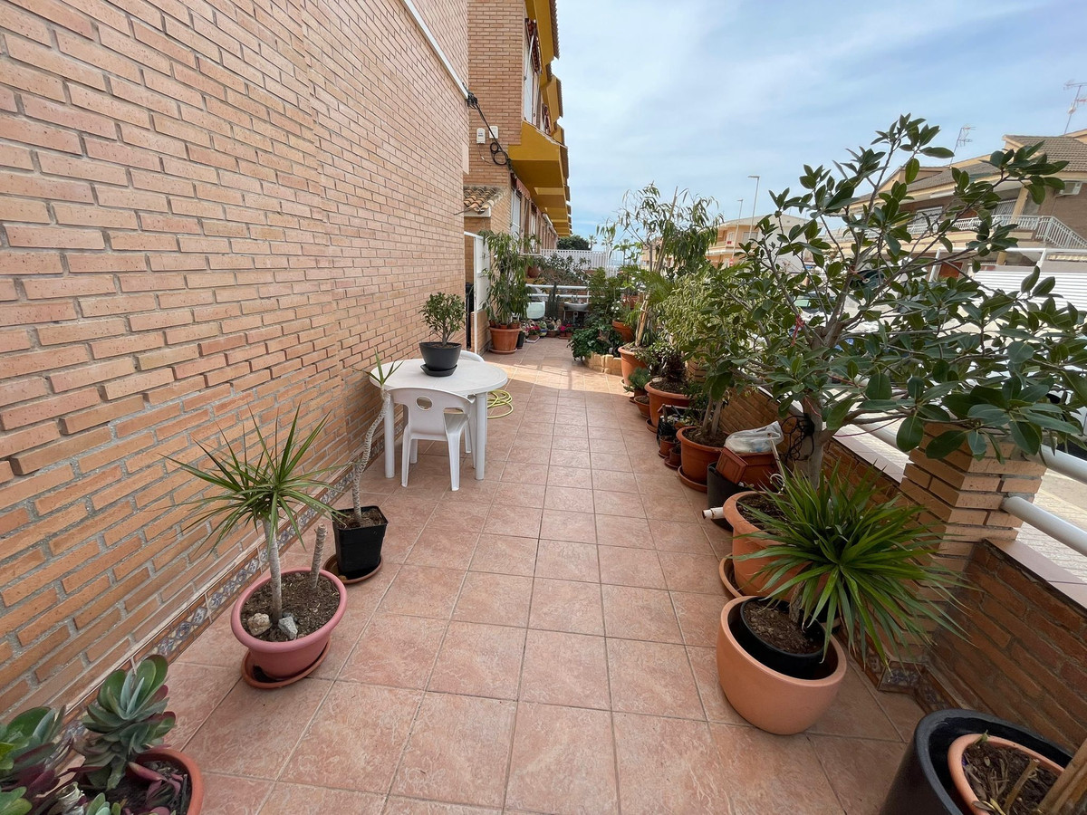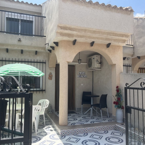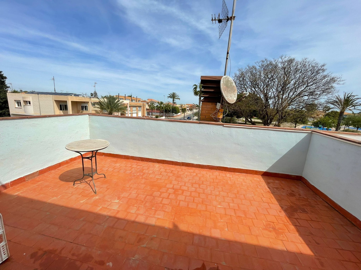 Terraced house with an attractive corner location and large roof terrace with nice views A warm welcome to this well-planned townhouse with an attractive corner location located in the popular area of Los Narejos on the Costa Calida. The terraced house has an inviting feel and consists of five bedrooms, a bathroom, two guest toilets, living room and kitchen. Added to this is a large patio on the ground floor, a balcony and a well-sized roof terrace with nice views.