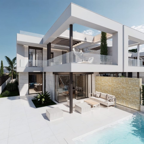 Ni eksklusive 3-soveværelses villaer, der kombinerer moderne design, kvalitet og funktionalitet. Deres uslåelige beliggenhed tilbyder fantastisk udsigt over golfbanen og Mar Menor.