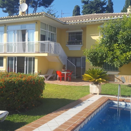 Spectacular Chalet/villa under construction located on a plot of 506 m2 in which a large garden, a private pool and a constructed area of 143m2 coexist. This impressive villa is located in the El Coto Urbanization, in Mijas Costa. It is known for its tranquility and natural beauty. It is conveniently located near Fuengirola offering easy access to all amenities such as supermarkets, pharmacy, restaurants and next to the prestigious San Francisco de Asís school. Built on one floor, the house has large terraces and an Andalusian patio with a three-spout fountain, ideal for intimate evenings. Warm living-dining room that forms a whole with the fully equipped kitchen with large-capacity wall and floor units and granite countertops. Three large double bedrooms with built-in wardrobes and an en-suite bathroom with a resin shower tray and suspended sink integrated into the cabinet. The villa is illuminated internally by LEDs in all rooms. The blinds are motorized in addition to the lighting and air conditioning integrated with Alexa or Google home. Barbecue area with bathroom and outdoor studio. Photovoltaic plant for electricity production. Exterior pergola for vehicle parking. Without a doubt an oasis to enjoy. Don't miss the opportunity to visit it!!