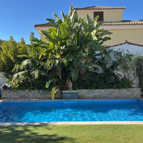 Set against breathtaking landscapes, offers panoramic views of the golf course, mountains, and the Mediterranean Sea. Its meticulously landscaped grounds feature a private pool, inviting residents to immerse themselves in outdoor living while basking in the natural beauty that surrounds them.