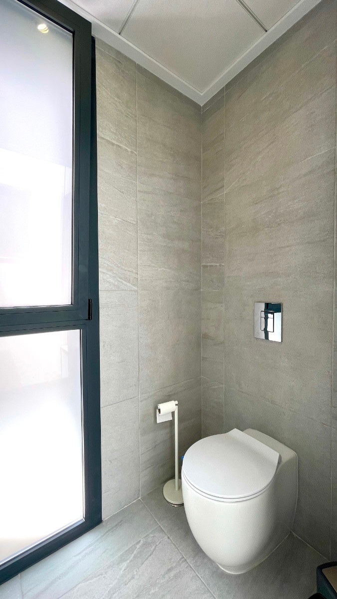 The stairs take you to floor -1, which is fully furnished with 2 bedrooms, 1 bathroom, a separate laundry room and an extra large storage room. This floor also has a multifunctional room (27.5 m2) that can be arranged as an extra room or as a play area. Just like on the ground floor, the multifunctional room and the 2 bedrooms overlook the inner garden.
