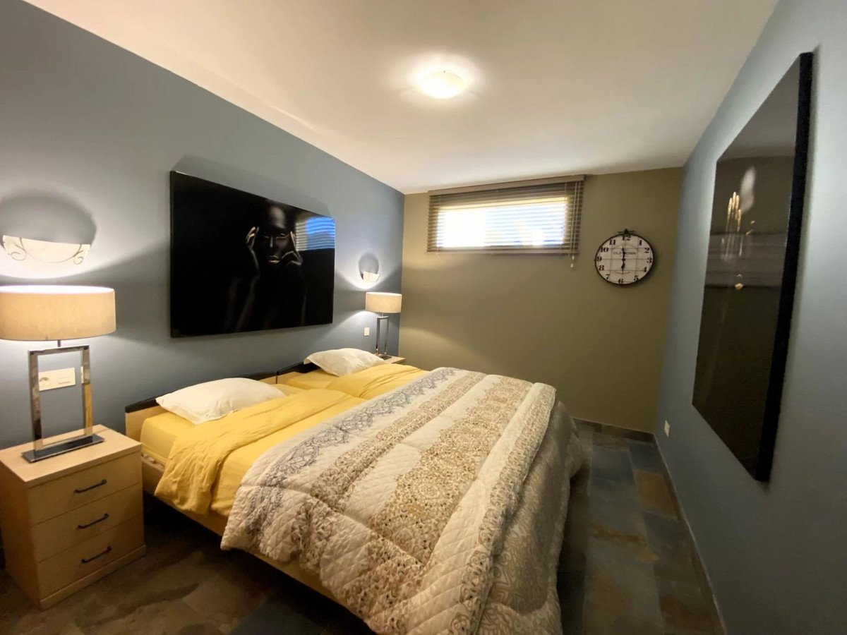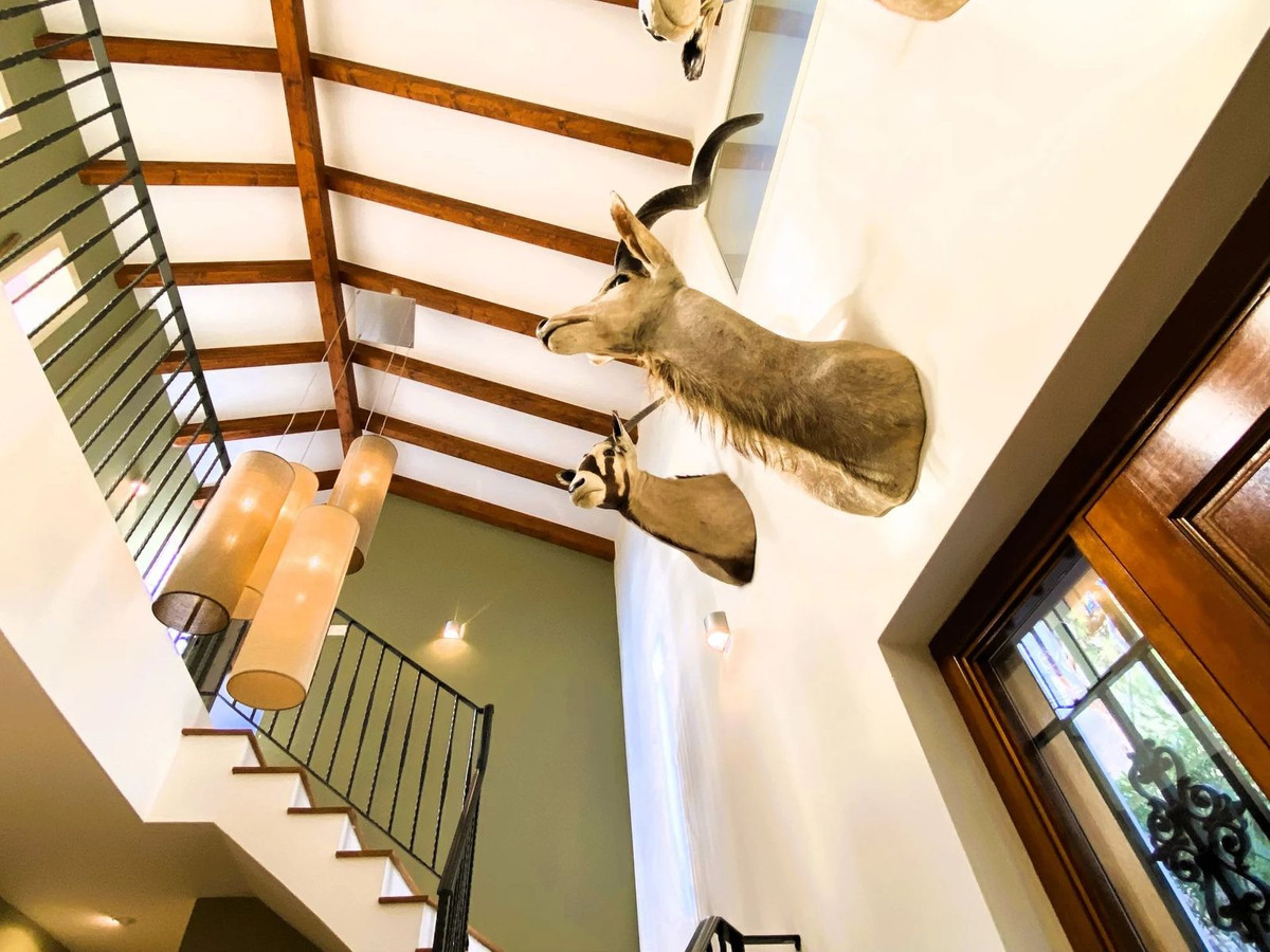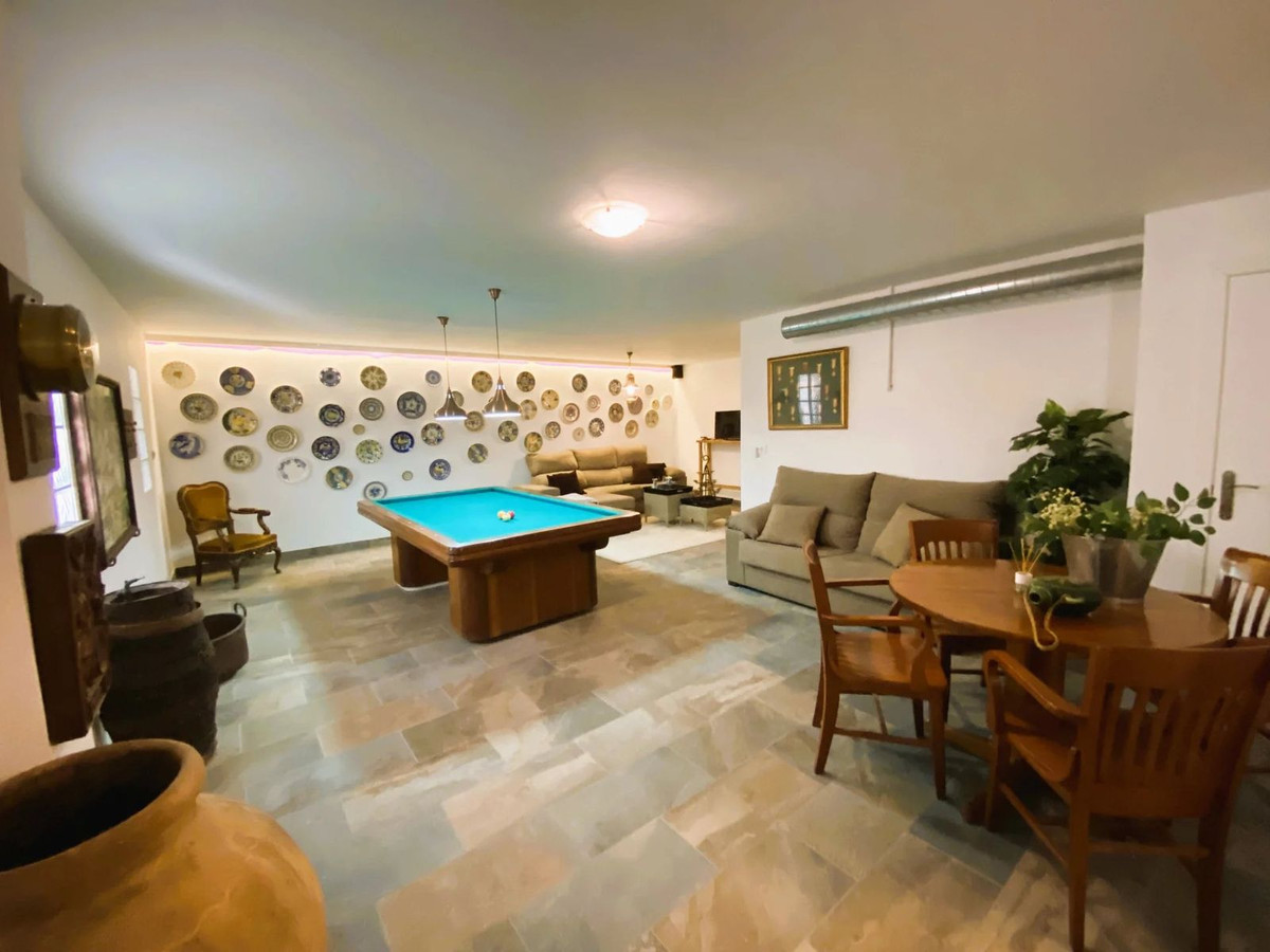 The ground floor offers respite with a large indoor swimming pool, ideal for year-round enjoyment. Two bedrooms, a bathroom, a generously sized sitting area/library, and a versatile living or play area with a billiards table provide ample space for leisure. Additionally, a separate laundry room and access to the spacious garage can be found on this level.