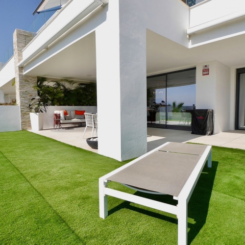 Discover the charm of this 2-bedroom luxury apartment nestled in the coveted enclave of Artola, just a delightful 20-minute stroll from the beach. The main allure of this residence lies in its prime location in a luxury complex boasting a gym and indoor pool. As you step inside, a discreet laundry room to your right, provides ample shelf-space for linen and the washing machine and tumble dryer. The 2 bedrooms are all conveniently located ahead of you (one of which is ensuite), and the kitchen/dining area is immediately to your left, leading out to the spacious terrace. The apartment is equipped with an energy-efficient heat pump system that bestows hot or cold air according to your needs. Both bathrooms also have underfloor-heating. Easy access to the rooftop terrace, where you can enjoy the sun throughout the year. Parking is a breeze with not one but two dedicated spaces – an indoor space for your vehicle and an outdoor convenience for guests. This flat is nestled within a secure gated complex, granting you exclusive access to a cutting-edge gym for your fitness pursuits. Step into the outdoors to find a spacious pool area, perfect for unwinding in the Mediterranean sun. For those cooler days, retreat to the heated indoor pool.