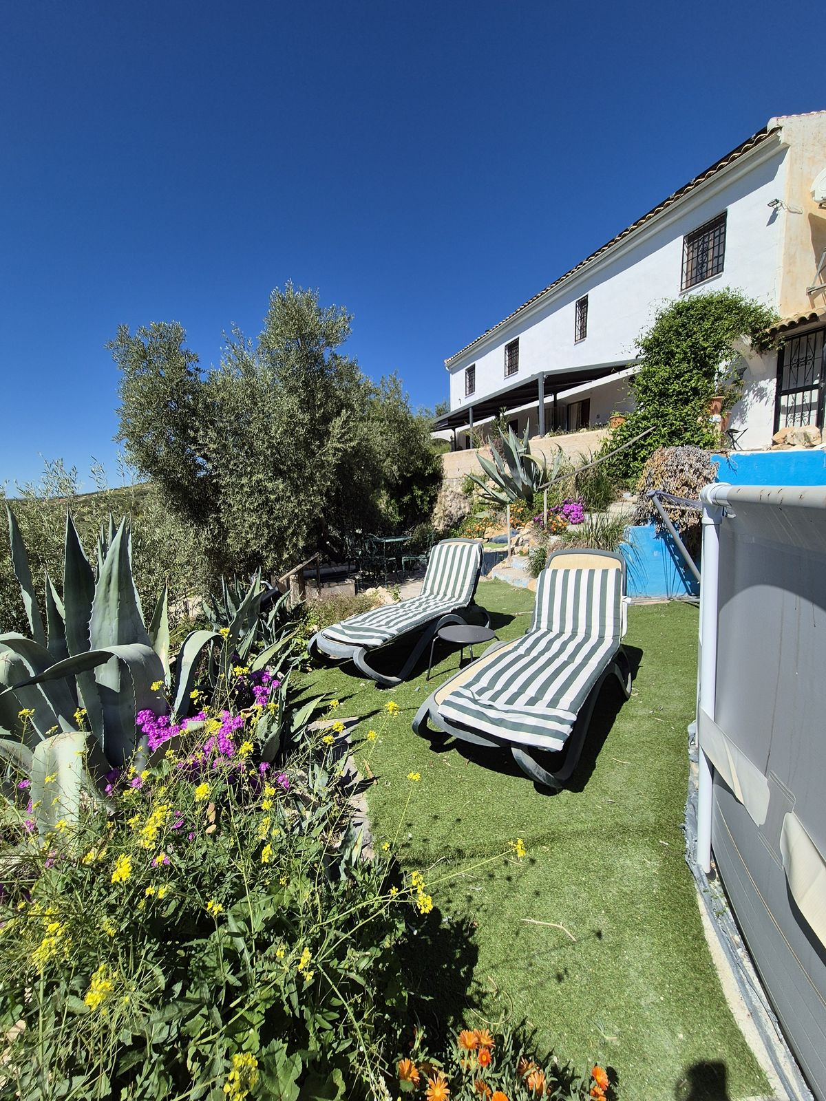 Huset er omgivet af en smuk have med egen frugt- og grøntsagsdyrkning, der er også pool og bowlsbane. Du har alt for at kunne hygge dig og også for at kunne underholde dine gæster. Fra de omkringliggende 400 oliventræer har du mulighed for at producere din egen specielle ekstra jomfru olivenolie. Med dagens pris på olivenolie har du mulighed for at gøre en rigtig god handel.