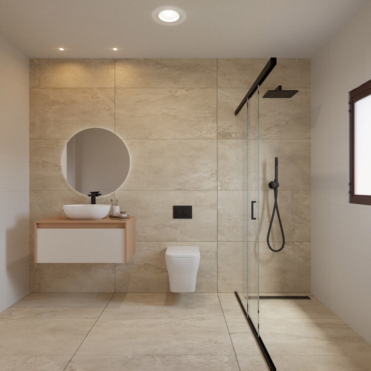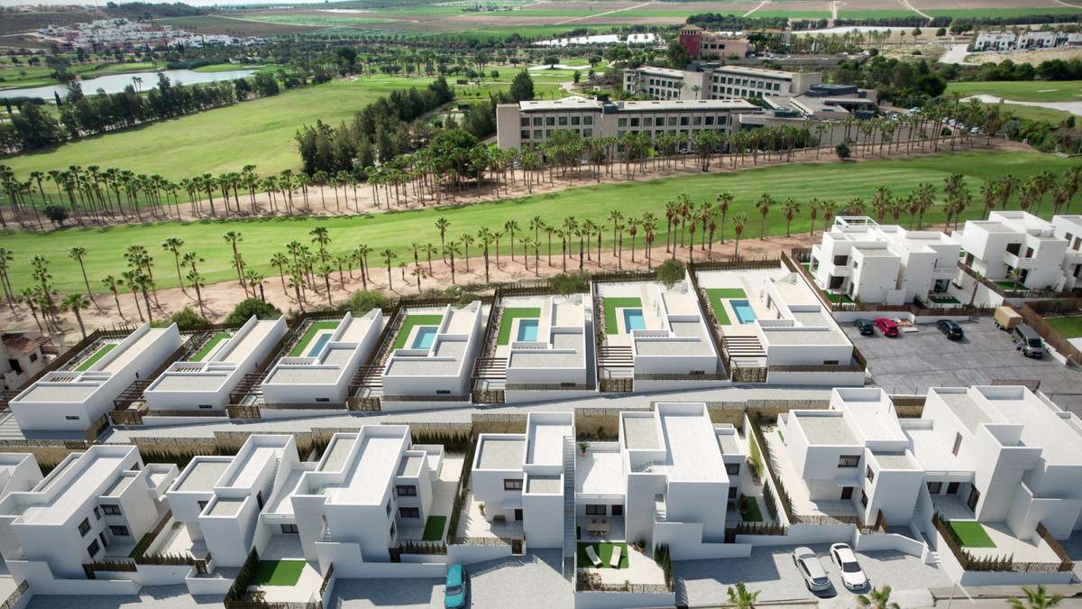 This new project comprises a total of 7 villas, each featuring 3 bedrooms and 2 bathrooms on the ground floor, a fully equipped kitchen, as well as a private pool, private parking, electric shutters, home automation system, pre-installation of ducted air conditioning, and LED lighting details both indoors and outdoors.