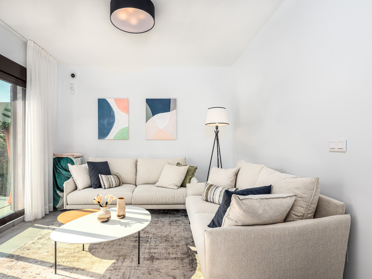 Med et tydeligt middelhavsdesign skiller komplekset sig ud ved brugen af holdbare materialer og de højeste kvalitetsfinish. Naturlige teksturer og rene farver kombineres med de bedste byggemæssige egenskaber og skaber en optimal planløsning, der forbinder rummene.