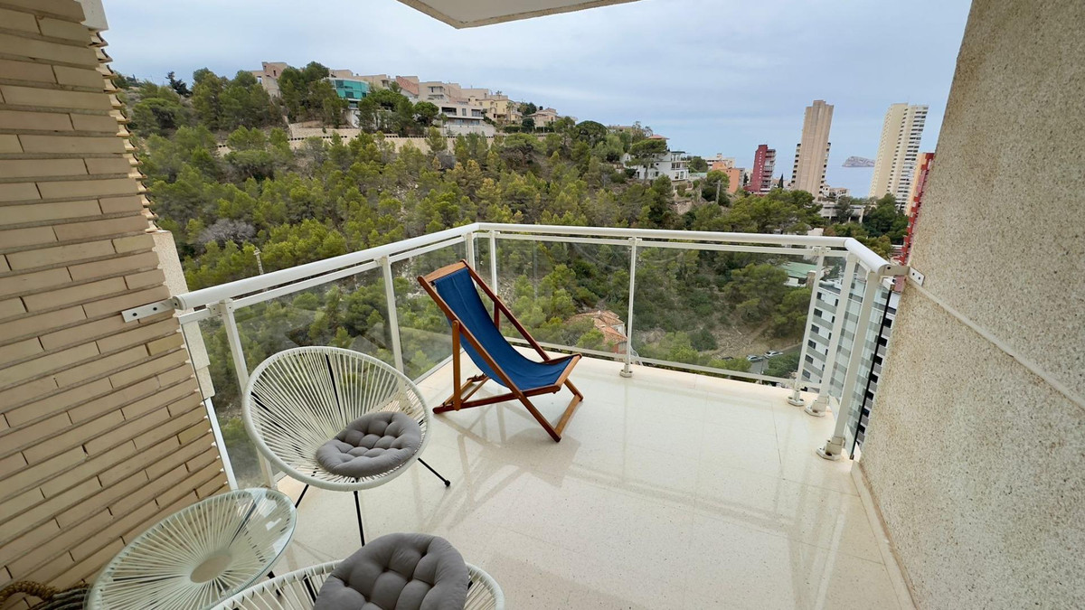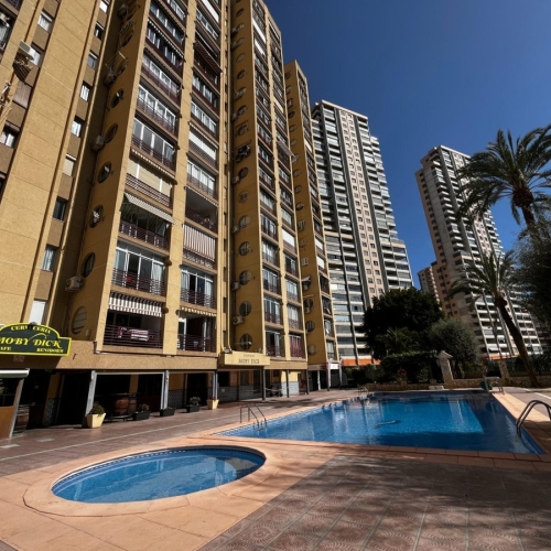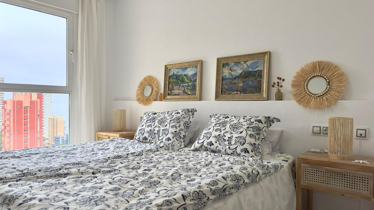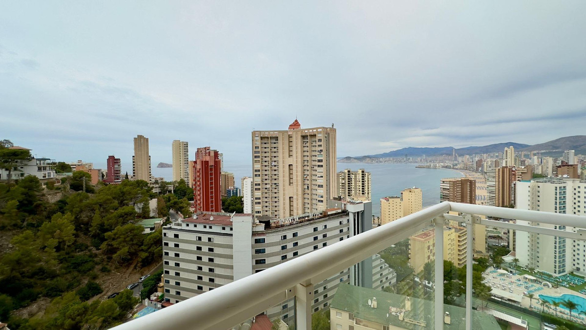 "Spectacular Apartment on the 18th Floor with Panoramic Sea Views in Benidorm"Welcome to your oasis in the sky! This spectacular apartment, located on the 18th floor, offers impressive panoramic views of both the surrounding landscape and the sea. From the spacious hall, you will enter a bright living-dining room that opens to an open terrace with movie-like views, where you can enjoy unforgettable sunsets and moments of relaxation.The apartment has a bedroom with a built-in wardrobe and a large floor-length window that offers beautiful views, as well as a large bathroom with a bathtub. The separate kitchen is fully equipped and has a very spacious laundry room for your convenience.In addition, this home comes with a parking space located on the -1 floor of the same building. Equipped with hot and cold air conditioning system, this apartment is delivered fully furnished and ready to move into.The urbanization offers a wide range of amenities, including a large swimming pool, basketball court, soccer field, ping-pong table, children's area and extensive green areas to enjoy outdoors. In addition, it is conveniently located just 300 meters from the beautiful Levante beach in Benidorm.Benidorm, known for its vibrant nightlife, wide range of entertainment and delicious cuisine, is the perfect destination to enjoy an unforgettable holiday or as an investment. With everything you need for a happy life at your fingertips, this apartment is an opportunity that you cannot miss.In addition, Benidorm has easy access from Alicante airport, ensuring a hassle-free arrival and departure for you and your guests.Don't miss your chance to live life to the fullest in this coastal paradise!