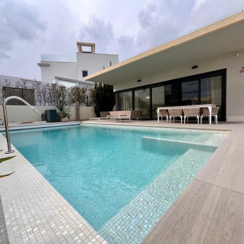 For sale villa near the sea in one of the most prestigious areas of the Costa Blanca - Campoamor.House of 734 m2 consists of 7 bedrooms, 6 bathrooms, 2 kitchens one with the dining area,a cabinet , utility room. The property has high-quality materials, marble floors, heigh ceiling of 3m, heating. On the territory of the villa there is a swimming pool 4x8, nice garden and an underground parking for 3 cars. There are 2 open plan terraces where you can admire the amazing landscapes of the Costa Blanca. This house is ideal for all-year-round living with the family or for the short holiday season as well.An ideal combination of nature and developed infrastructure, because everything you need is close to you - shops, bars, restaurants, pharmacies, schools, banks, sports complexes and large shopping centers ... Golf courses, the unique salt lakes of Torrevieja and many authentic Spanish cities.