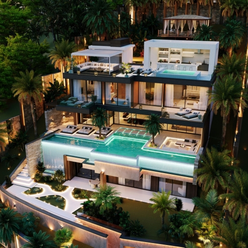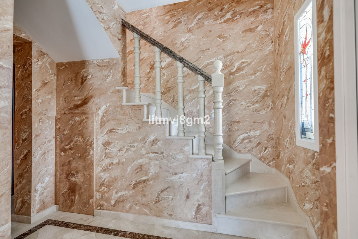 This luxurious four-bedroom villa, located in the peaceful area of lower Artola / Hacienda Las Chapas, just 5 minuntes walk to the sea, is the epitome of elegance and comfort. Boasting a classic design with high-end finishes, the property features an abundance of marble, adding to its opulent charm. The interior is bathed in natural light, enhancing the meticulously crafted details throughout the home.