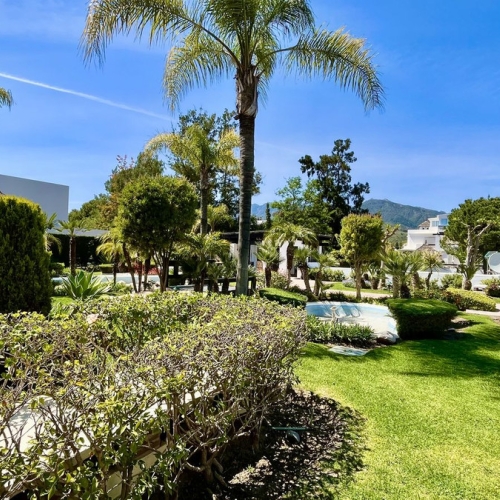 This luxurious penthouse, located on Marbella's prestigious Golden Mile in the Coral Beach complex, epitomizes beachfront living. The property features three spacious bedrooms and two elegant bathrooms, providing ample comfort and privacy. The highlight is a 74 m² terrace with breathtaking panoramic sea views, ideal for outdoor dining and relaxation. The interiors are bathed in natural light, complemented by a modern open kitchen with stunning mountain views. Residents enjoy access to lush tropical gardens, a large communal pool, and direct beach access. The penthouse also includes underground parking and storage space. Its prime location offers proximity to renowned restaurants, luxury hotels, and prestigious golf courses, making it perfect for those seeking a sophisticated Marbella lifestyle.