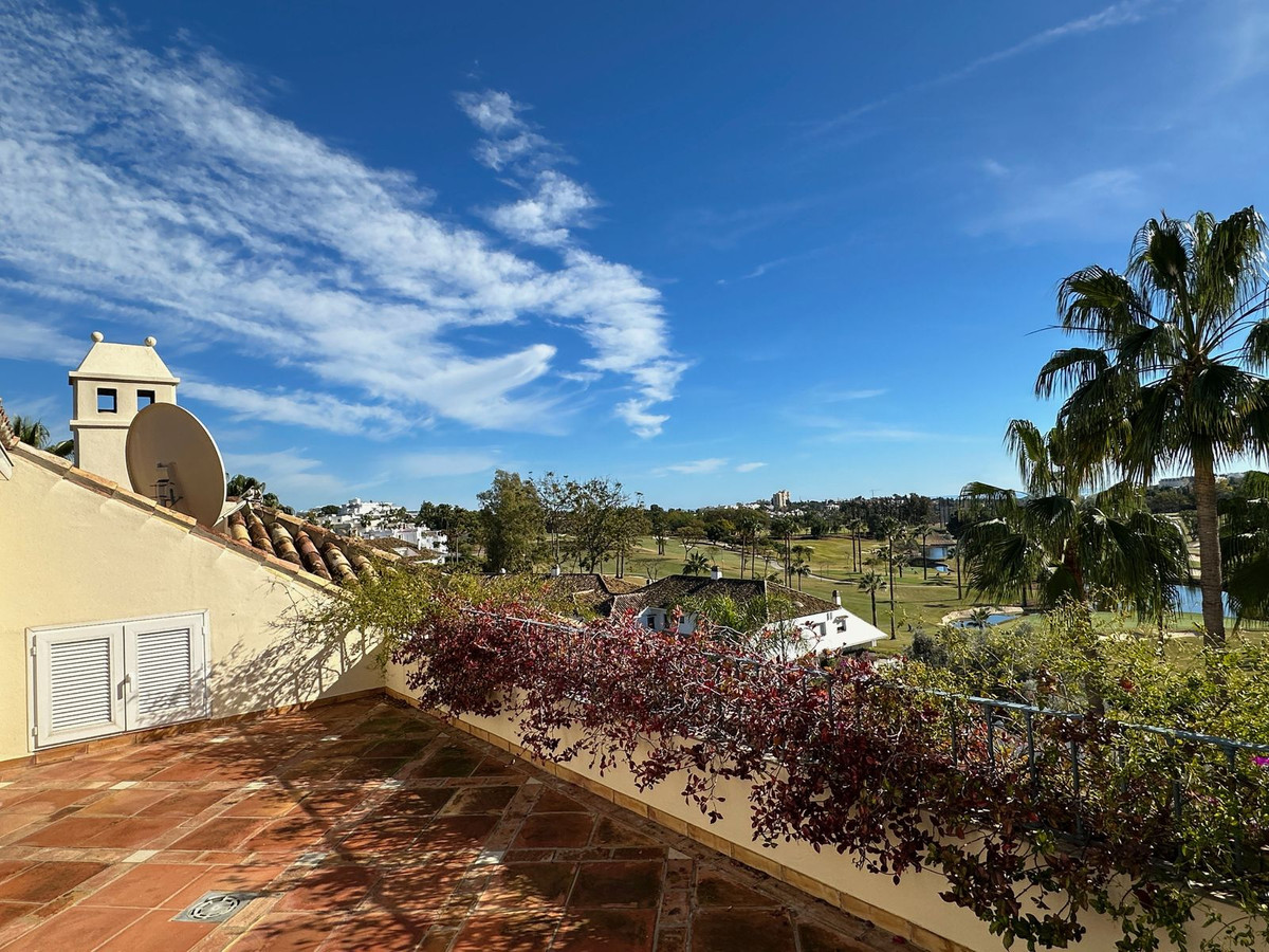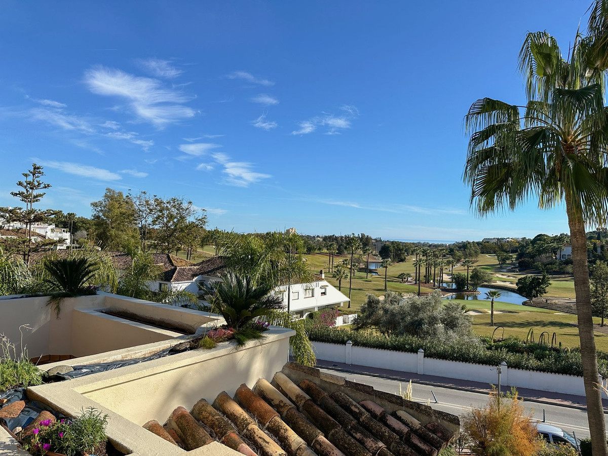 Welcome to this exquisite frontline golf penthouse with stunning panoramic sea views, in one of the prestigious urbanizations of the area . This remarkable 3 bedroom, 3 bathroom penthouse is a true gem, in need of refurbishment and modernization to make it look its best again. It offers an unparalleled combination of elegance, tranquility and natural beauty.