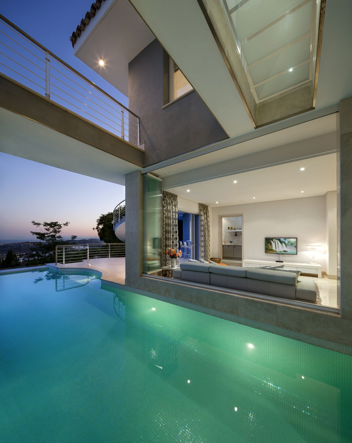 * Lots of special terraces with polished steel railings invoking feelings of being on a luxury cruise ship overlooking the Mediterranean