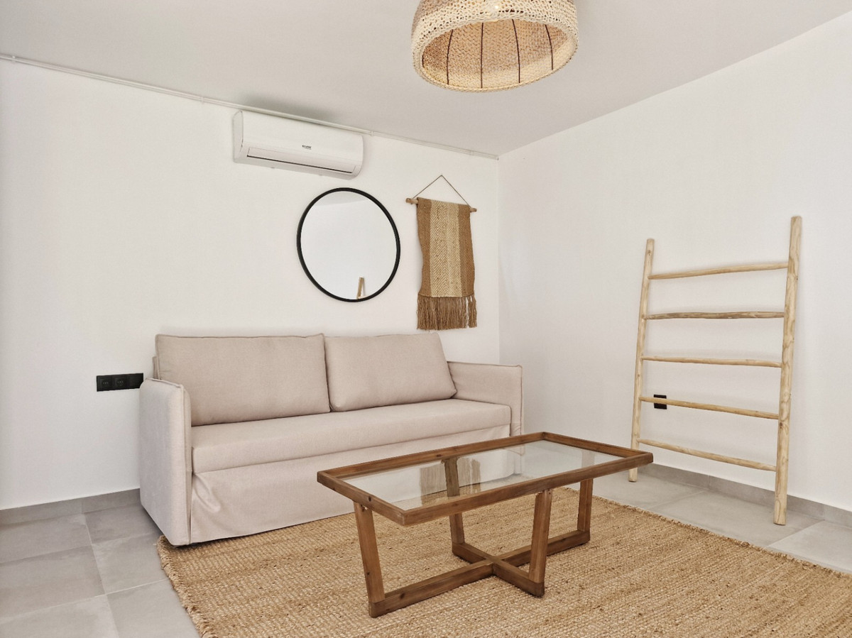 The pool area is completely private, an oasis of tranquility with a 10x5 meter pool. The microcement in the pool creates a beautiful turquoise color that blends perfectly with the surrounding landscape. The summer lounge by the pool is a cozy place to relax with a refreshing drink and enjoy the ambiance.