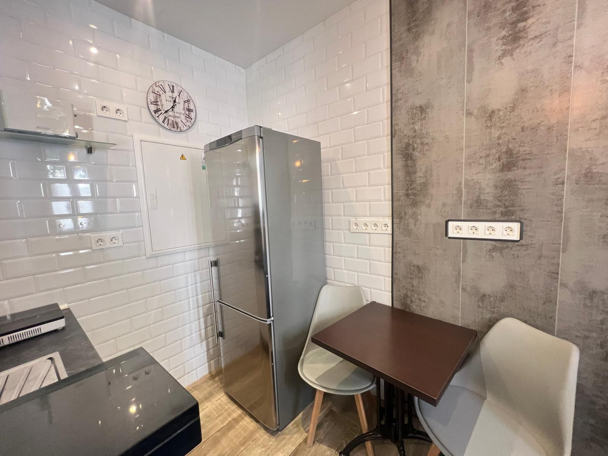 Fully equipped kitchen with brand name appliances, American refrigerator, black granite countertops.