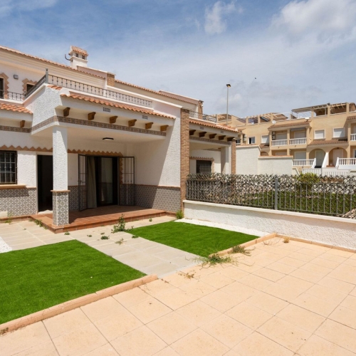 San Miguel de Salinas, Duplex townhouse of 102 m2 built, completely renovated and a paved garden of 82 m2, the house has 3 bedrooms (1 on the ground floor), 3 bathrooms, large independent kitchen, living room, terrace and a large solarium of about 25 m2, the house is sold furnished with an underground garage and large storage room, the residential has a community pool.