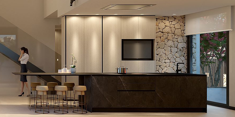Køkkenet i åben planløsning er topmoderne, fuldt udstyret og designet til madlavningens og komfortens entusiaster. Derudover har villaerne aircondition, fuldt udstyrede badeværelser med gulvvarme, et hjemmestyresystem og elevator (mulighed i Mustique-modellen).