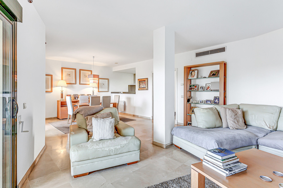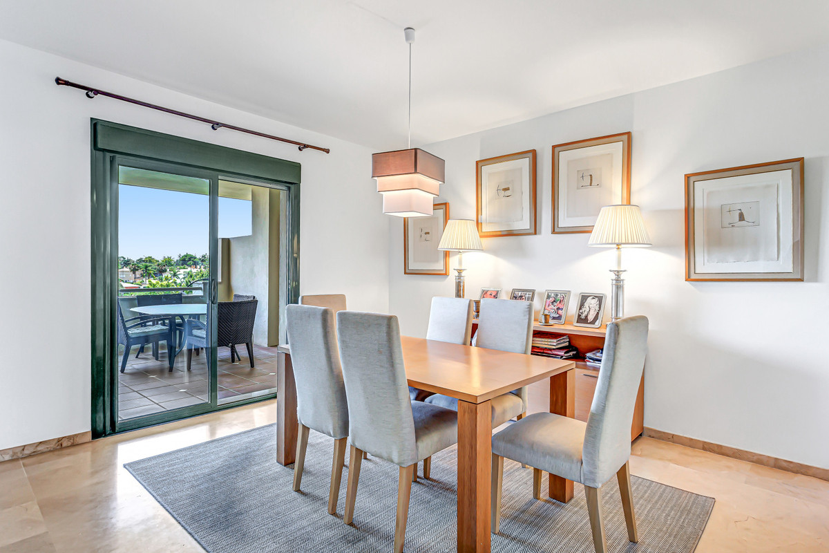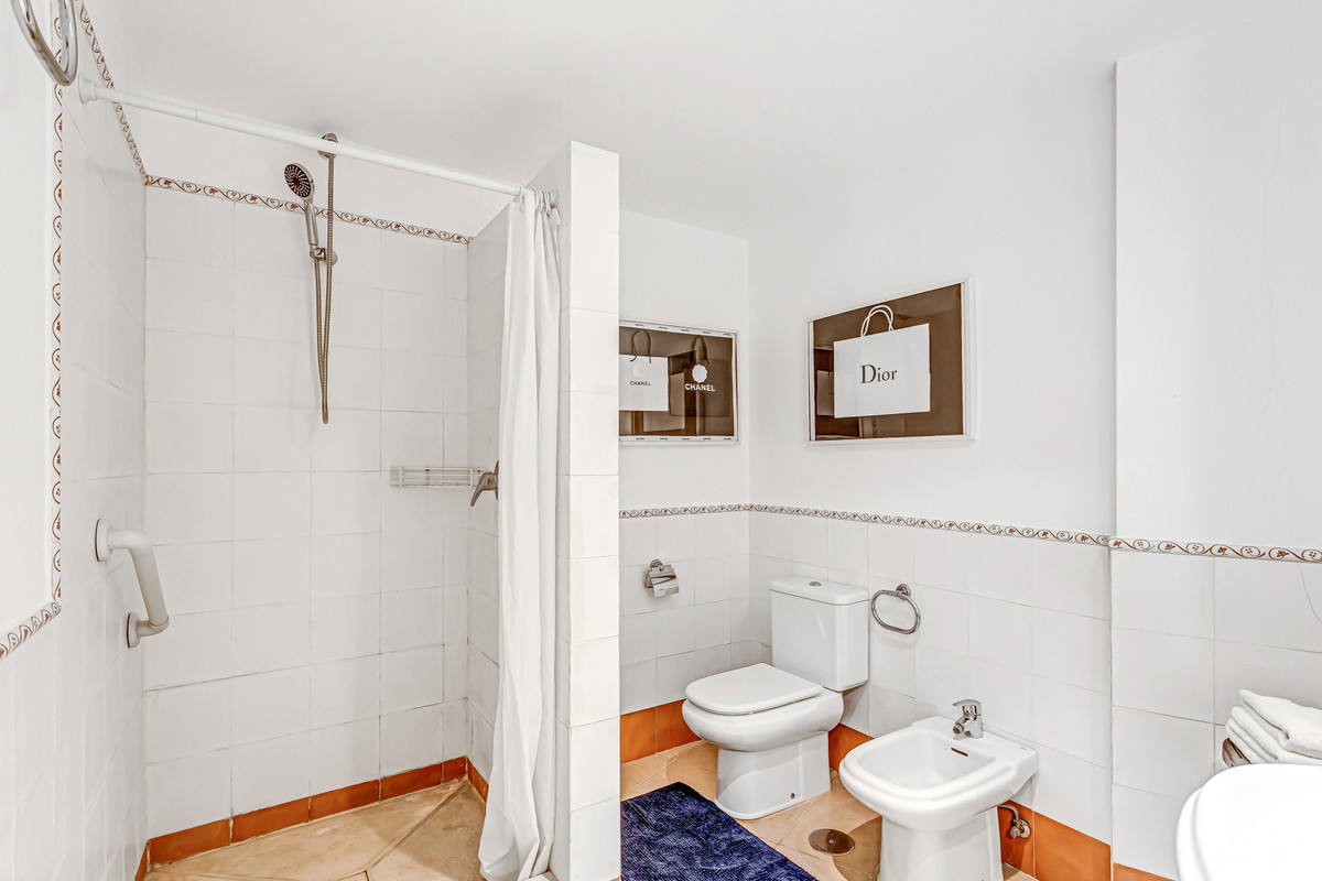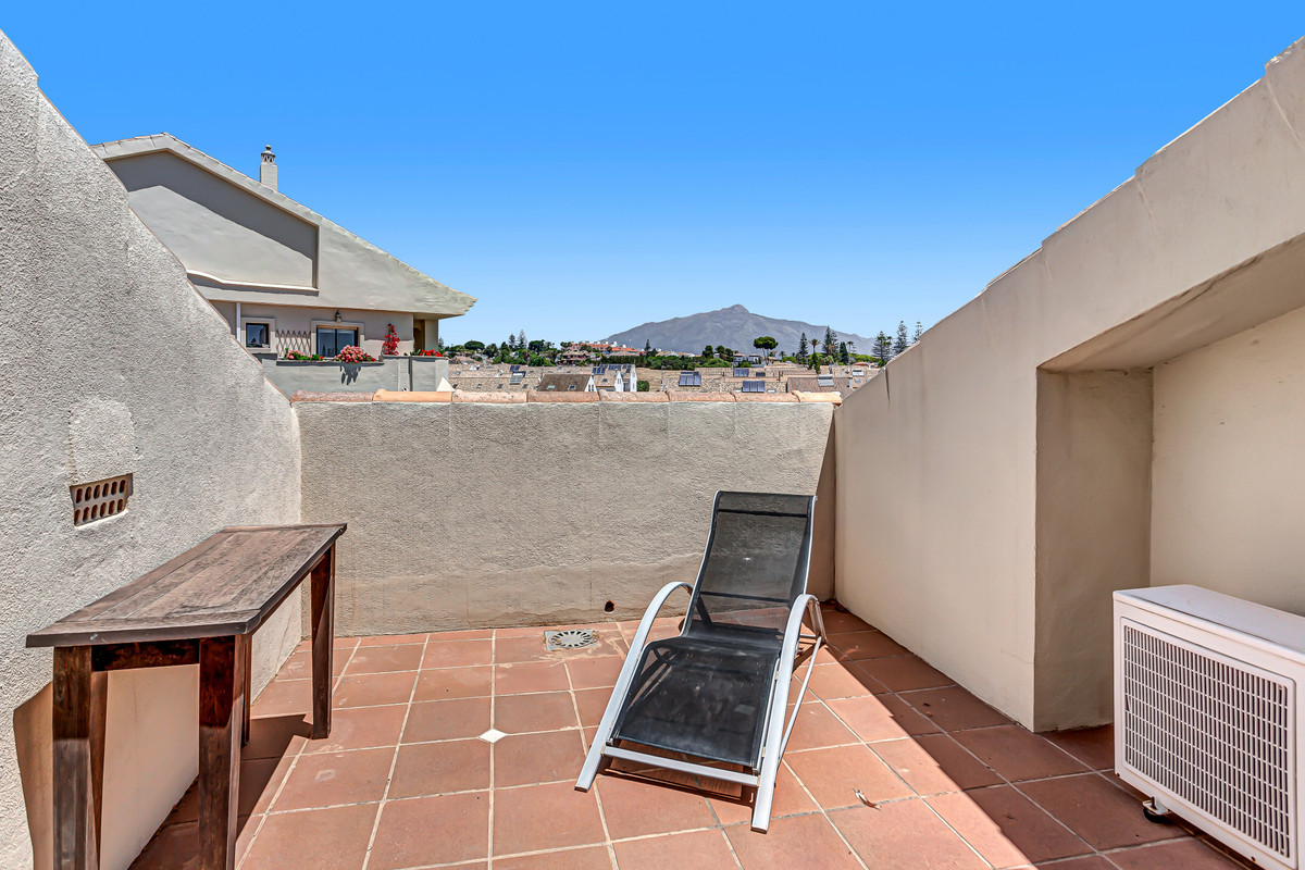 This stunning duplex penthouse, located in the highly sought-after area of Guadalmina Alta, San Pedro de Alcantara, offers an unparalleled living experience. With a spacious built area of 185m² and an additional 48m² terrace, this property boasts three bedrooms and three bathrooms, along with a guest toilet. The penthouse is ideally positioned front line to the golf course, providing breathtaking open views of the golf greens and the shimmering sea. Its southwest orientation ensures ample natural light throughout the day, enhancing the already vibrant atmosphere of this elegant home.