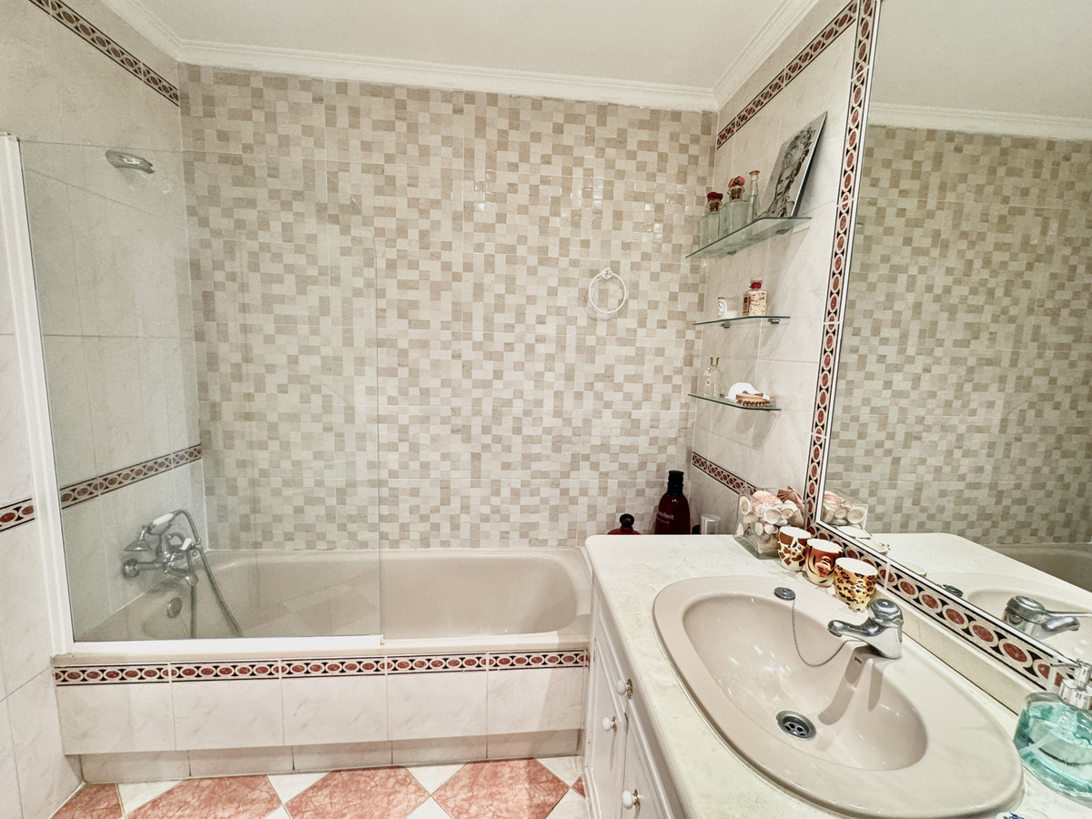 Beautiful family villa with a lot of charm located on the second line of the beach the well established urbanisation Linda Vista Baja, San Pedro de Alcántara. Built on a single floor, on a beautiful plot it has a very nice mature garden, with tropical plants and fruit trees. Due to its magnificent position, it is a very interesting renovation proyect. Just a few minutes walk to all kinds of services such as restaurants, international schools and shops. South facing, with beautiful views of the sea and to the mountains from the roof terrace. It consists of: cozy covered porch very privated with views to the garden. Spacious living room with dining area and fireplace, large fully equipped kitchen with breakfast area and laundry room. In total there are 6 double bedrooms with built-in cupboards + 1 maid´s bedroom and 3 bathrooms. The master bedroom is very spacious with its en-suite bathroom and office. Maid's room with shower room. On the East side of the house, there is a very cozy patio, ideal as a summer dining room for the whole family covered with awnings. Private garage and outdoor parking area for several cars. Air-conditioning. Solar panels.