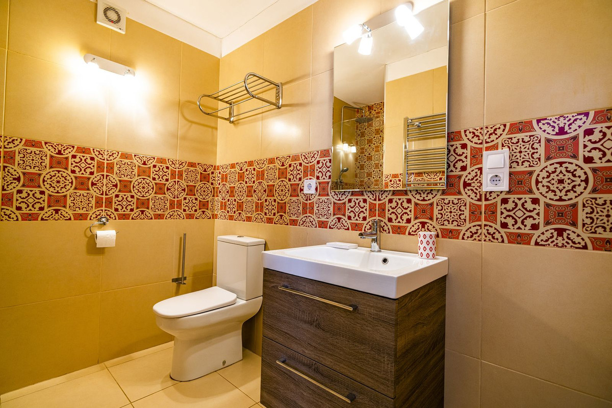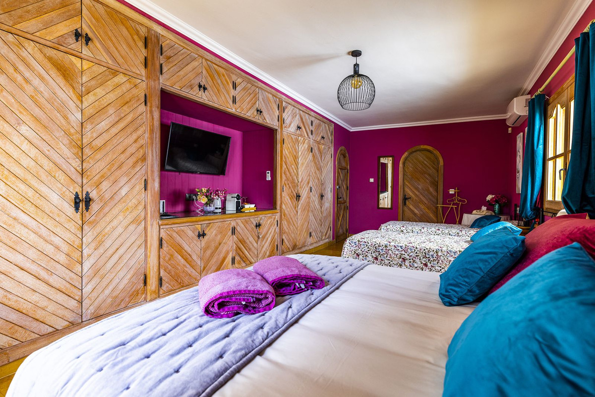 Gæsteboligerne består af fire rummelige dobbeltværelser, herunder et stort familieværelse, alle med eget badeværelse og tre med adgang til terrasser. Ejernes private bolig omfatter et soveværelse med dobbeltseng og eget badeværelse, to altaner og et vaskerum.