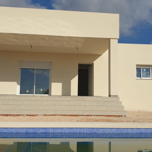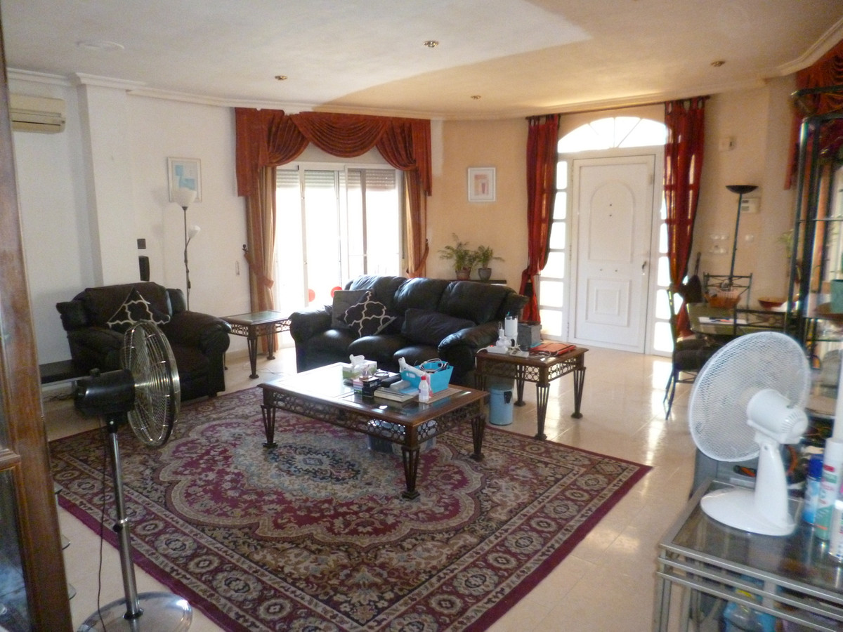 We are pleased to offer this Luxury Villa in Benferri, Orihuela, Alicante. A 4 bedroom 2 bathroom, 210m2 interior, This fabulous Villa is separated in to two self contained accommodations.Upstairs has a grand staircase to the sun balcony which wraps around half the top floor of the Villa with views of the surrounding mountains, countryside, the swimming pool and gardens. The front door entrance to the living room which is a large room with patio doors to the sun balcony on each side of the villa, one view of the driveway electric gates and garage entrance, the other the swimming pool and private gardens. The two bedrooms are very spacious with fitted wardrobes and the bathroom is fitted with a shower cubicle and bath. The kitchen is a large separate modern fitted with patio doors to the sun terrace and seating / dining area. A door to the downstairs, which has two more double bedrooms, bathroom, and a large living room / dining room with an open plan modern American style galley kitchen. The garden is entered through a large sliding doors from the living room to the private 620m2 plot and 8m x 4m swimming pool. The beautiful white sandy beaches are 40km away and many championship golf courses available with a short drive. A property perfect for holidays or permanent living with an extra income if you don't need the whole Villa.