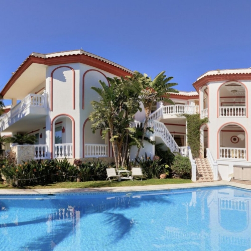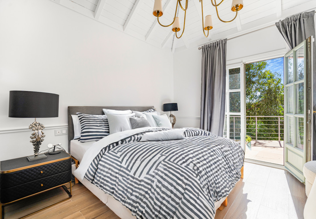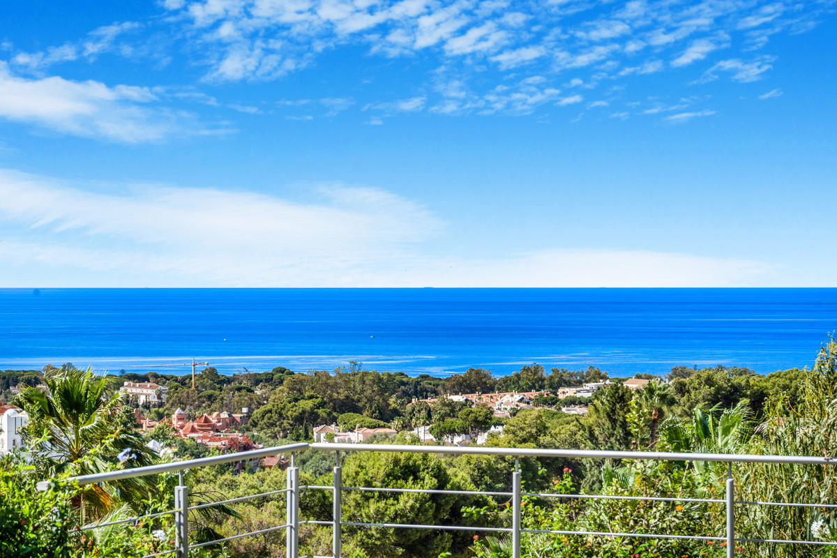 Magnificent seks værelses Villa beliggende i Hacienda Las Chapas, Marbella. Denne ejendom er tæt på faciliteter, golfbaner og stranden, med kun et kort ti minutters kørsel til Marbella. Villaen har spektakulær havudsigt fra både stueetagen og første sal; indgangsniveauet har en rummelig åben plan stue og spisestue med indbygget pejs, lounge og adgang til terrassen, haven og privat swimmingpool; fuldt udstyret køkken; gæsteværelse og et gæstetoilet. Den første sal har master suite med walk in skab og rummelig terrasse med smuk udsigt til havet og poolen; to gæstesuiter; og to gæsteværelser med en deling badeværelse og terrasse. Det lavere niveau af ejendommen fører til fitnesscenter og spa, komplet med badeværelse, sauna og Hamam. Der er også et opbevaringsrum; vaskerirum; og lounge område på dette niveau. Andre funktioner omfatter varme og kolde aircondition, dobbelt bil port, indbyggede garderobeskabe og solpaneler. Der er også et godkendt projekt til at tilføje et selvstændigt pensionat på 130m2 med tre soveværelser og badeværelser.