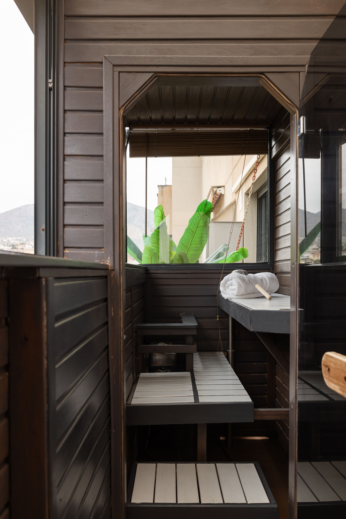 The penthouse has two bedrooms, a large bathroom with shower and a private sauna with its own shower room, located at the rear. The sauna offers impressive views of the mountain and the emblematic figure of "El Toro". Additionally, there is another terrace at the rear, facing west, perfect for watching the beautiful sunsets over the mountains.