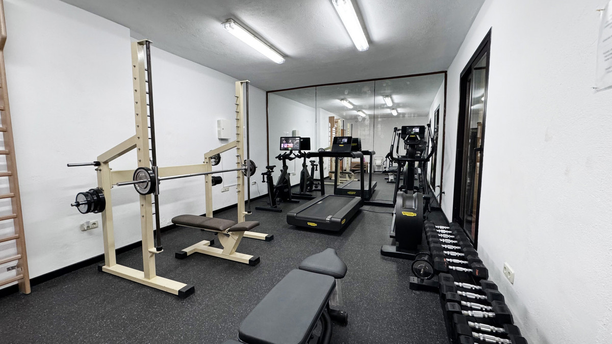 The interior of the penthouse spans 207m² and features a fully fitted kitchen, a lavish living room, and a laundry room. It comes fully furnished and equipped with modern amenities including air conditioning and fitted wardrobes, ensuring comfort and convenience. The communal areas include a heated pool and a gym, promoting a healthy and active lifestyle. The covered terraces further extend the living space, allowing for year-round enjoyment of the serene surroundings.