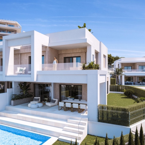 An exclusive boutique development of 14 semi-detached homes ideally located on Estepona's prestigious New Golden Mile, between the renowned El Paraíso and El Campanario golf courses. Designed for modern Mediterranean living, each home features four spacious bedrooms, four bathrooms, a private garden, a generous basement, and a spectacular rooftop solarium with panoramic sea and mountain views.