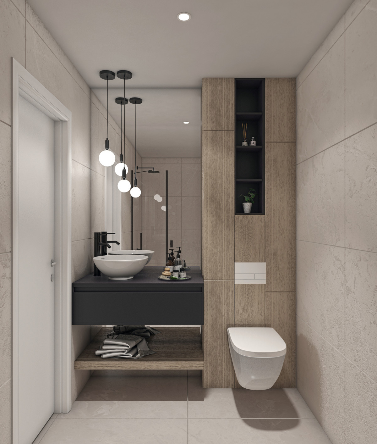 Ejendommene er fordelt over 4 etager, med 2 eller 3 soveværelser og 2 badeværelser. Stueetagen har 3 soveværelser (det tredje soveværelse er et åbent studio uden indbygget skab) og de øverste etager har et stort solarium.
