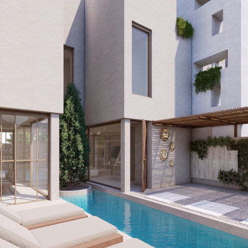 Dette projekt er et luksuriøst kompleks bestående af 10 rækkehuse med privat swimmingpool og parkeringsplads på grunden.