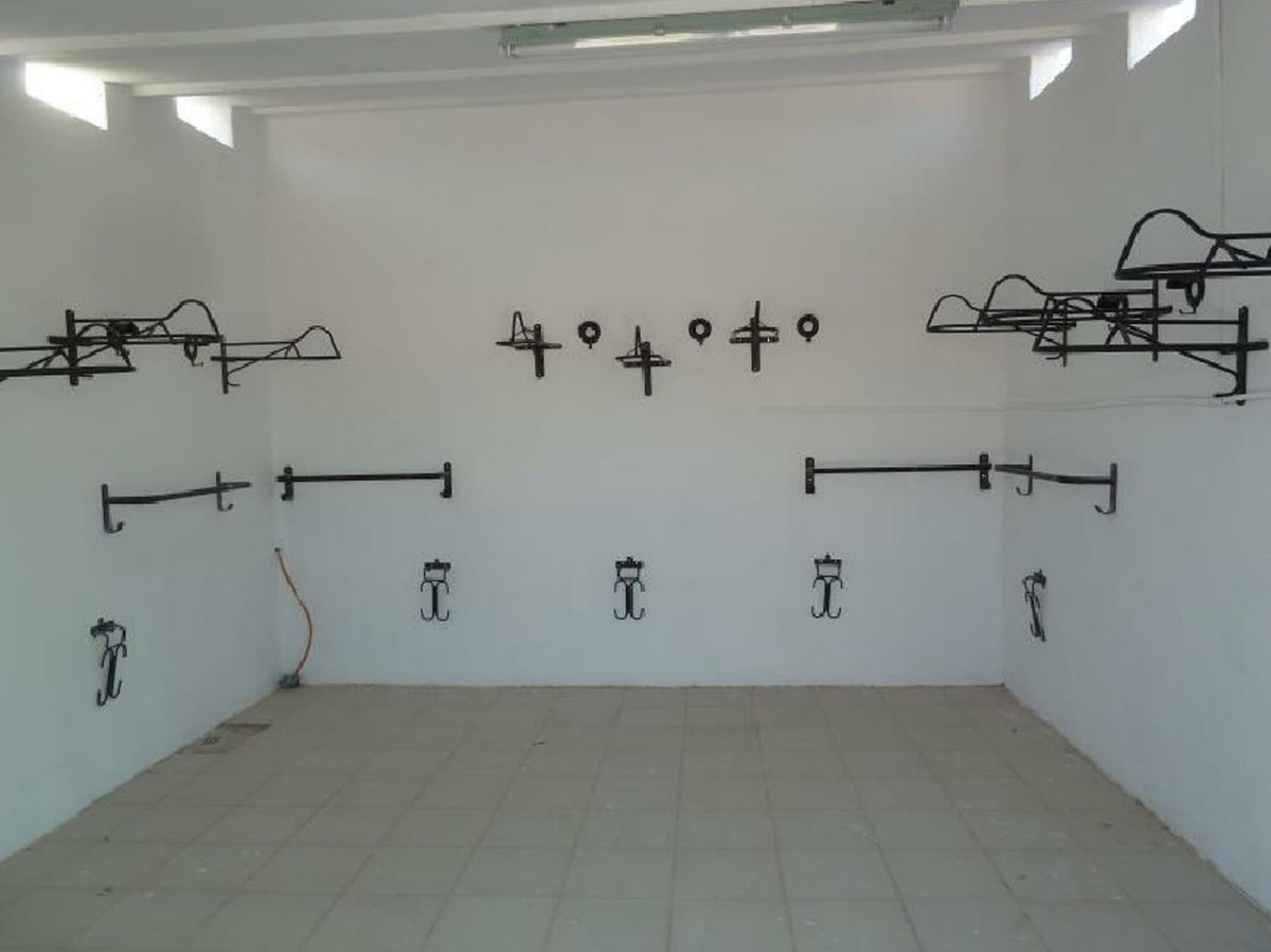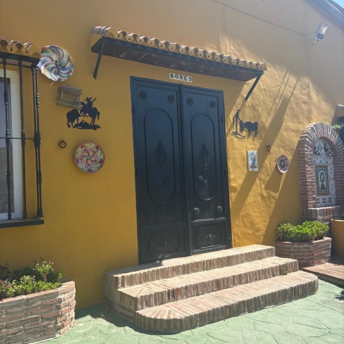 Inden for er der 12 stalde til heste sammen med et almindeligt lagerrum plus en anden til opbevaring af udstyr.