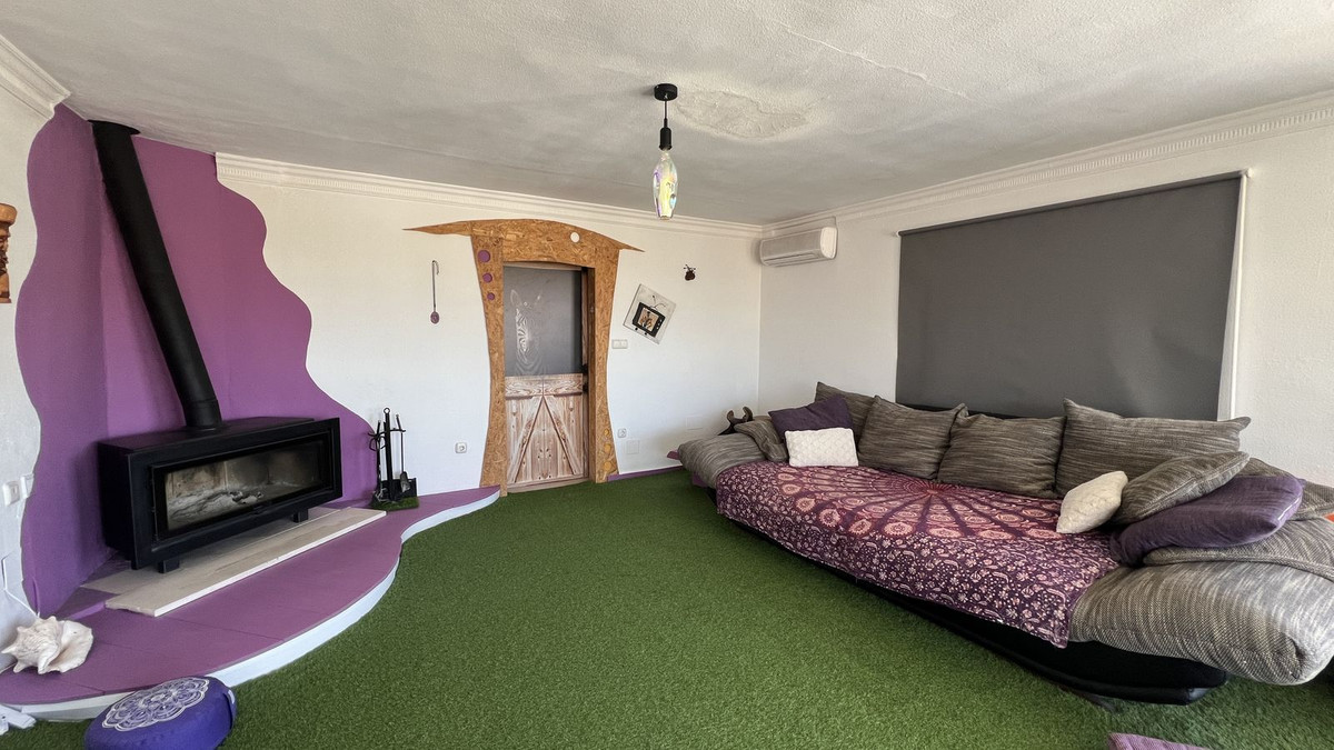 • Living Room: The large living room is the perfect place to relax, with a cozy fireplace and large bay windows offering stunning views of the Guadalhorce Valley and beautiful sunsets.