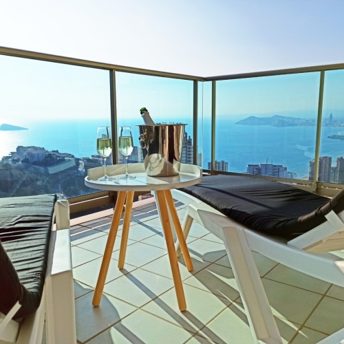 Latest Luxury Apartments in InTempo Building Ponente beach BenidormA Unique Opportunity. A Unique Experience. A Unique Investment.Introducing the tallest residential building in Spain and the second tallest in the European Union: the InTempo Building. Standing at 198 meters high with 47 floors and 256 homes, it offers an unparalleled living experience.For Sale: Luxury Apartments on the 15th FloorThis emblematic building in Benidorm features corner apartments with 2 bedrooms, 2 bathrooms, a living room, an equipped kitchen, terraces with stunning sea views, and an underground parking space included in the price.Exceptional Quality and FeaturesEach apartment is built with the highest quality materials and finishes, including:- Hot/cold air conditioning- Underfloor heating in bathrooms- Lacquered aluminum exterior carpentry with low solar factor double glazing- Fully equipped kitchen with appliances- Armored main door- LED lighting- Video intercom systemExclusive AmenitiesThe InTempo building boasts 6,500 m² of common areas, offering exclusive services such as:- Concierge and 24-hour security- 3 high-speed elevators- Children's play areas- Gym and fitness room- Sky wellness area- Sauna and massage rooms- Indoor pool with panoramic views- Outdoor swimming pools- Solarium terraces with jacuzzis- Terrace bar and restaurant- Underground parking- Community Wi-Fi networkPrime LocationLocated just 200 meters from the magnificent Poniente Beach in Benidorm, the InTempo building is surrounded by a variety of services and shopping centers. It is also well connected by road, with quick access to the A7 highway that runs along the Mediterranean coast, and by TRAM, providing easy access to the entire province of Alicante.Don't miss this opportunity to own a luxury apartment in one of the most iconic buildings in Spain.