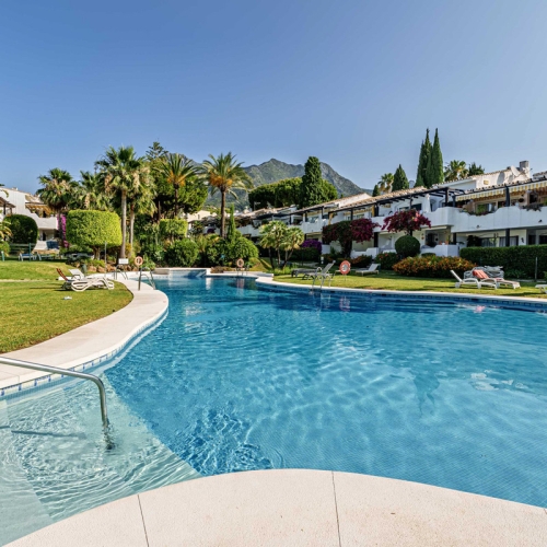 Oplev denne fantastiske sydvendte lejlighed kun få minutter fra Marbellas centrum, stranden og Puerto Banús. Denne eksklusive bolig har to smukke swimmingpools i frodige fælles haver og 24-timers sikkerhed for ro i sindet.