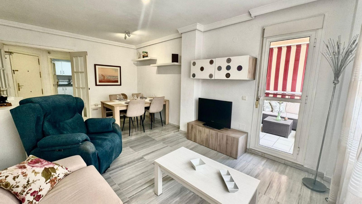 This well-appointed 2-bedroom apartment is located in the heart of Torremolinos, offering a comfortable and convenient lifestyle. The apartment features a spacious living area with access to a private terrace, perfect for relaxing and enjoying the views. Both bedrooms are equipped with fitted wardrobes, providing ample storage space.