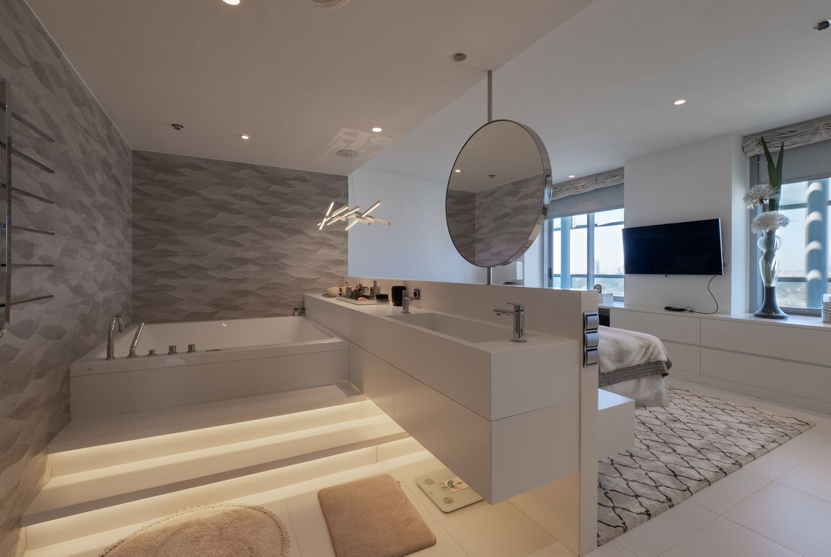 The state-of-the-art, open-plan kitchen is a chef's dream, outfitted with top-of-the-line appliances, sleek stainless steel finishes, and quartz countertops. This space is designed to cater to your culinary needs while also serving as a social hub.