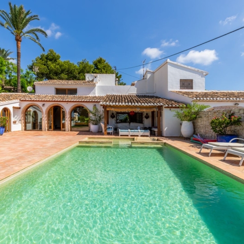 In the middle of the Montgo natural park we find this authentic Mediterranean villa with potential. Guaranteed green area where new construction is not allowed, quiet location yet only 8 minutes from the bustling center of Javea. Through an electric sliding gate you enter the property with carport, parking space for 4 cars and direct access to a small casita, used as an art studio for the moment. Both the house and the guest house have private entrance doors.