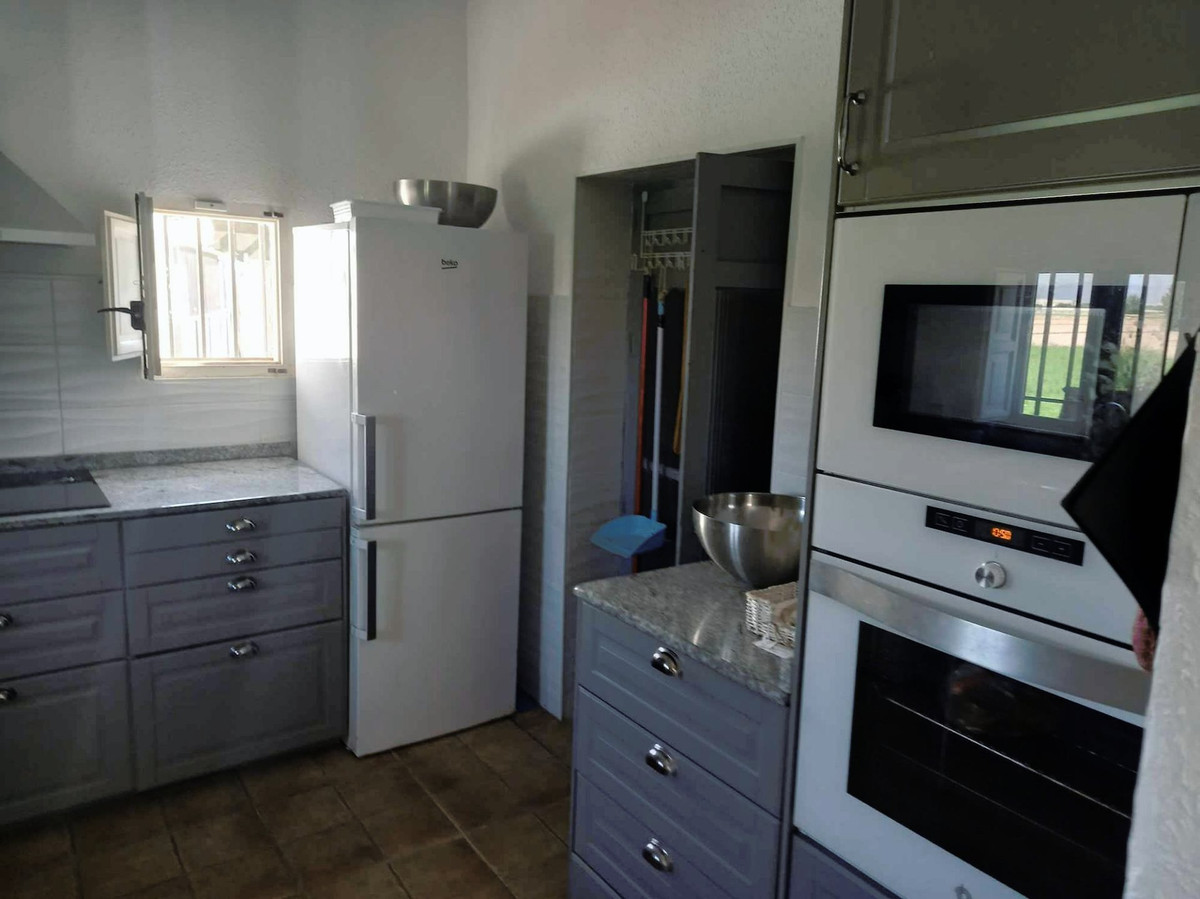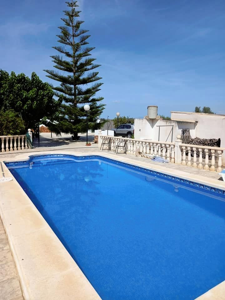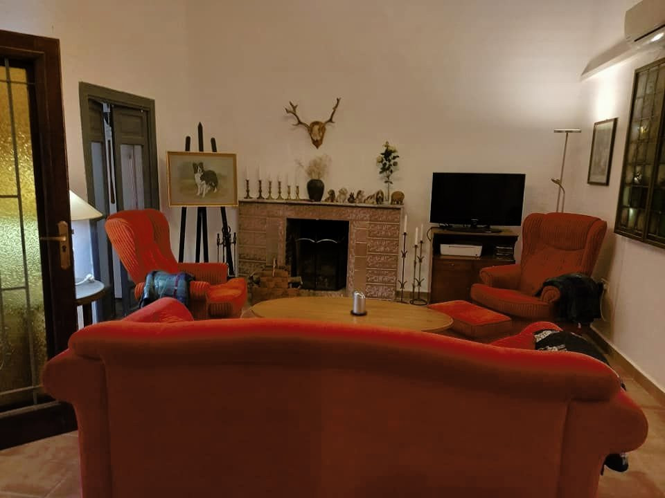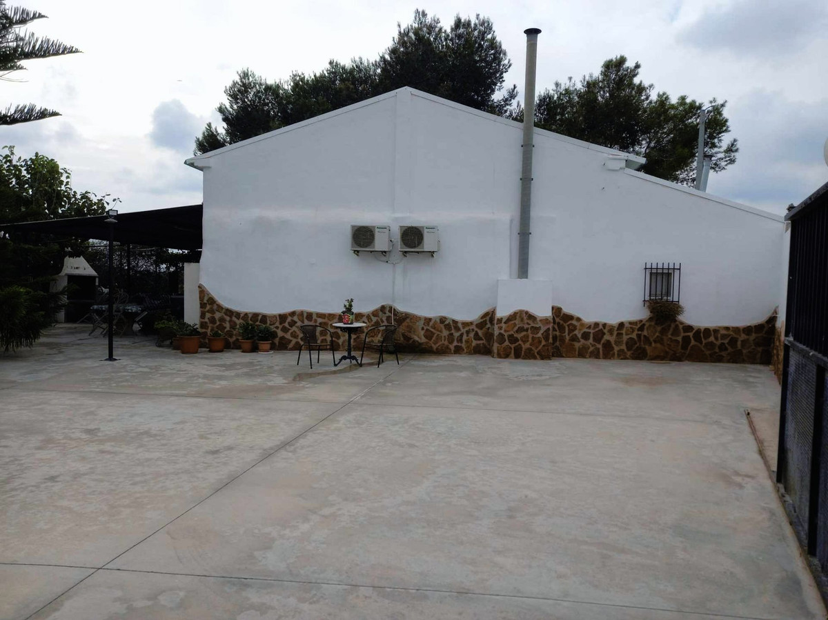 Here you have a wonderful old finca with 17,758 square meters of land. The handicap-friendly residential building has high ceilings and is approximately 146,5 square meters in size. 3 large bedrooms, living room, kitchen and dining room and 2 toilets with shower. There are 4 AC heat pumps and a fireplace. The kitchen is well equipped with fridge, freezer, oven, microwave, induction hob, dishwasher and fan. A 7 kg washing machine is in the garage.